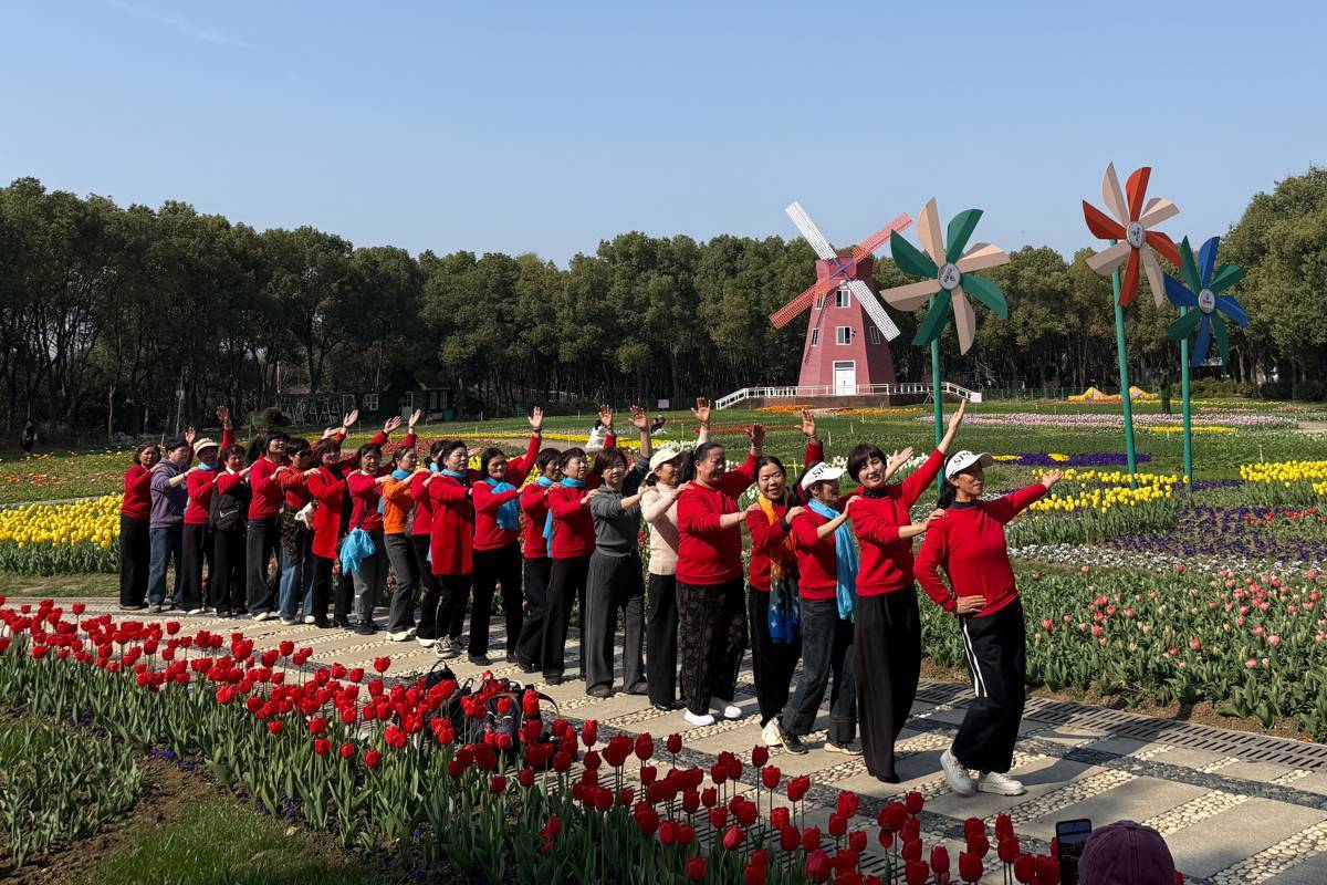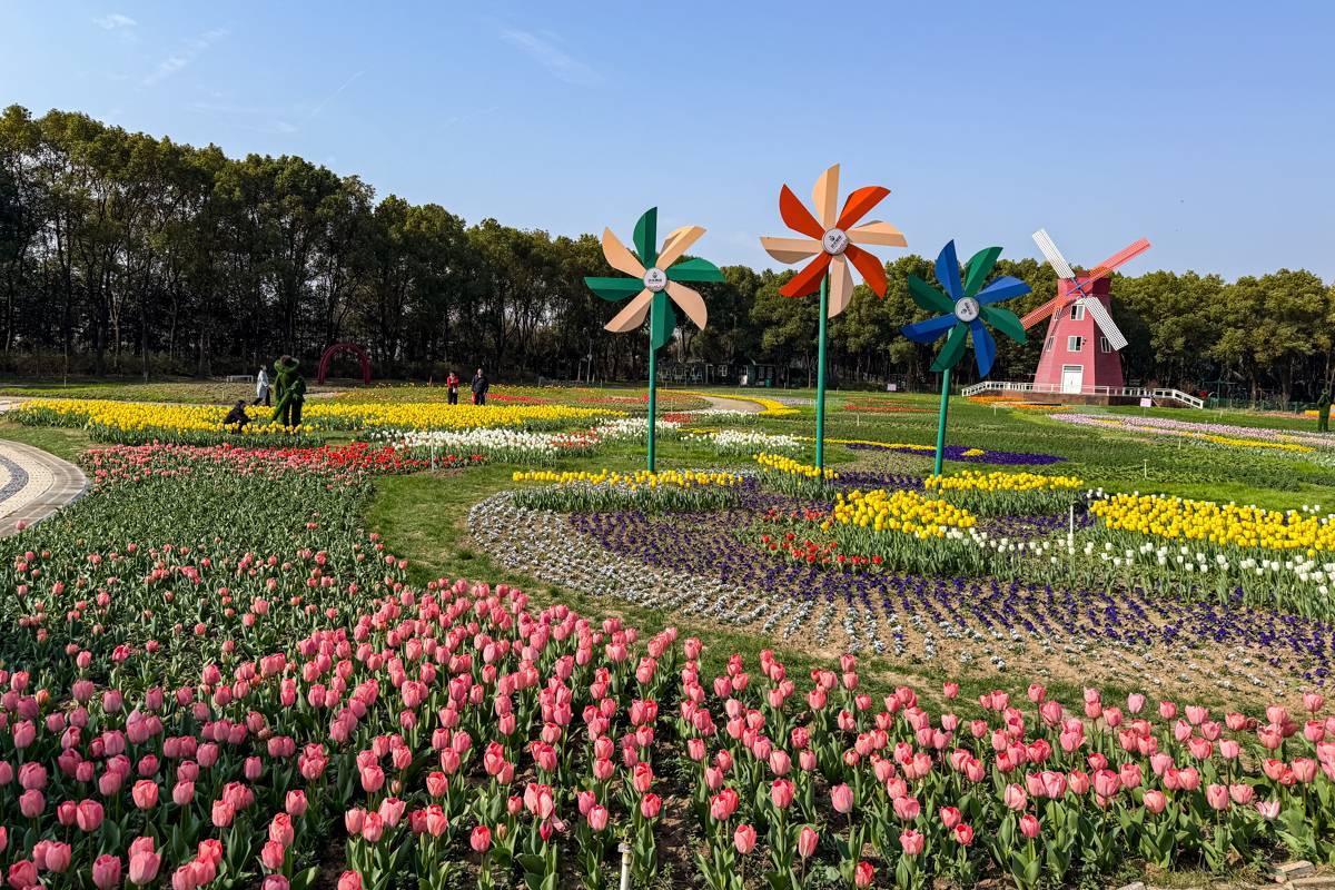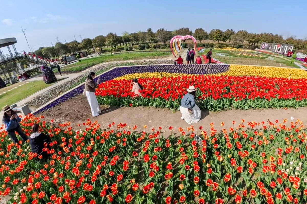 市民在郁金香主题公园内踏青赏花,享受春日暖阳。