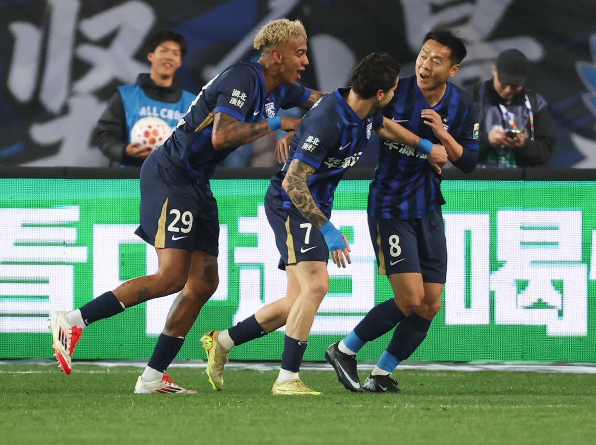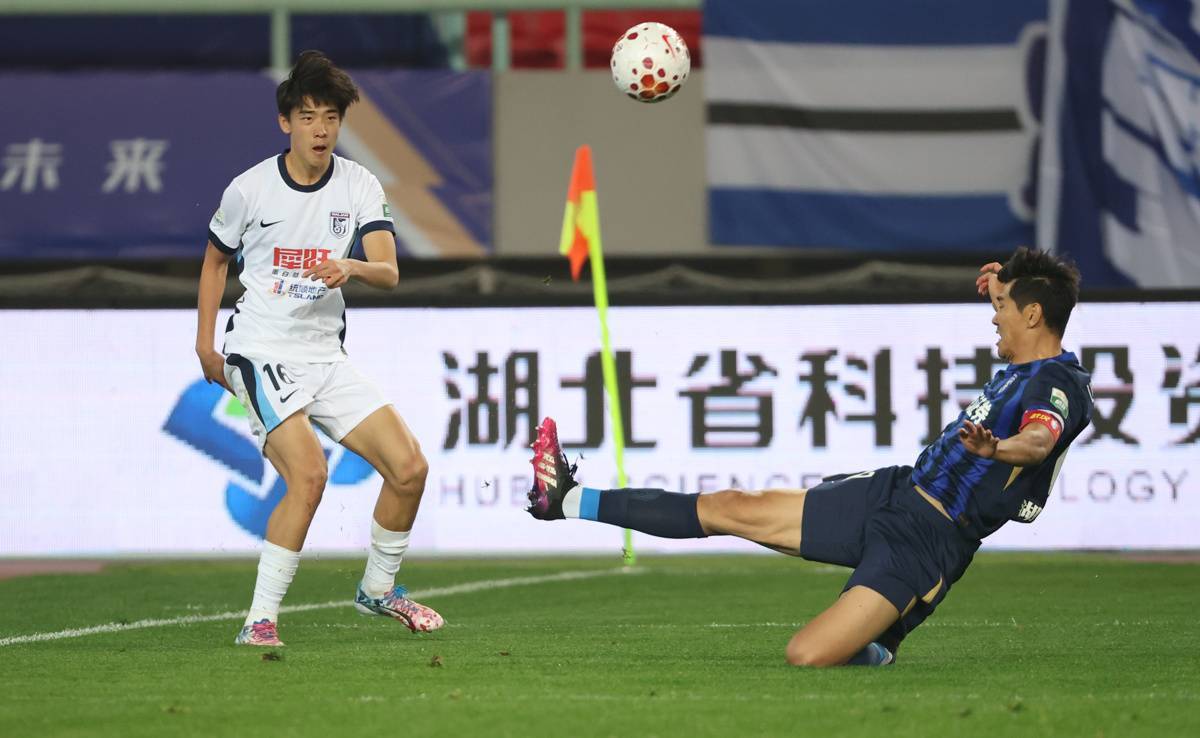 3月13日晚,武汉三镇4比1大胜大连英博,斩获新赛季首场胜利。(湖北日报全媒记者 柯皓 摄)
