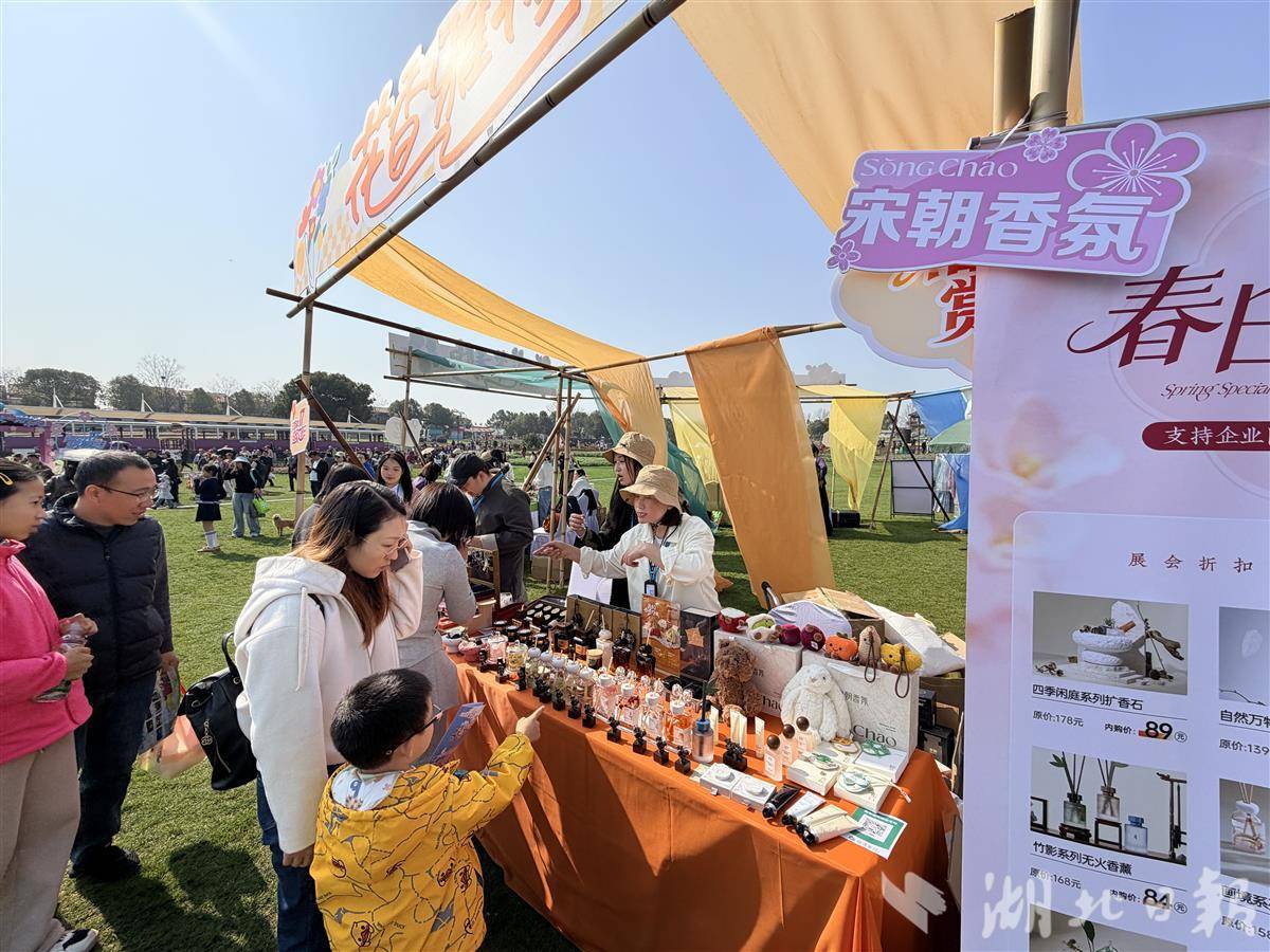 在活动现场,以“知音湖北 一路繁花”主题视觉搭建的电音、马拉松、电竞、国风等沉浸式春季出游驱动场景互动式迷你体验区,吸引大批游客和媒体体验打卡。围绕花形食物、香氛制品、旅拍打卡、非遗手作等花主题打造的花的市集,也让众多游客纷纷驻足体验消费。