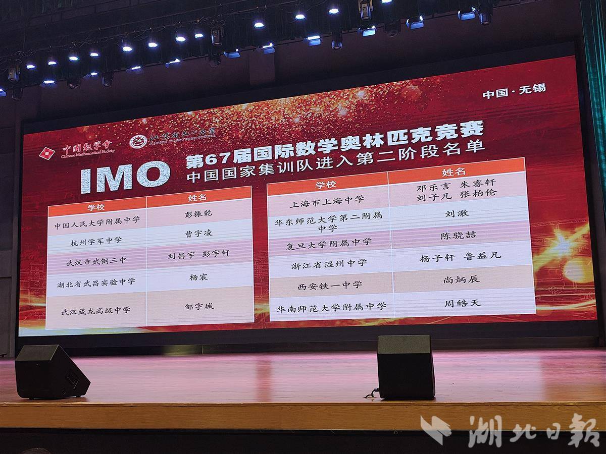 湖北日报讯(记者张倩倩、通讯员代江连)3月14日,第67届国际数学奥林匹克(IMO)中国国家集训队第一阶段选拔活动在江苏落下帷幕。历经10天封闭集训与4轮高强度“车轮战”后,全国最终仅16人晋级下一轮,其中湖北占得4席,且全部来自武汉。