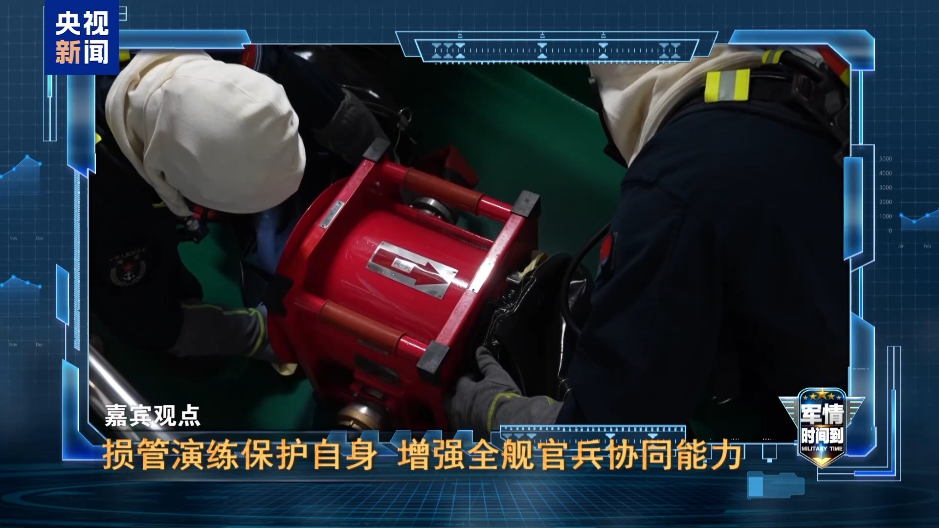 军事评论员 曹卫东:因为我们一定要强调它是万吨级的导弹驱逐舰,一旦发生着火或者是进水的这种情况的时候,损管部门一定要非常及时,发生战争或军事行动的时候,才能有效地保存自己的生命安全和装备的完好。同时,这也是增强了它们全舰协同的能力。