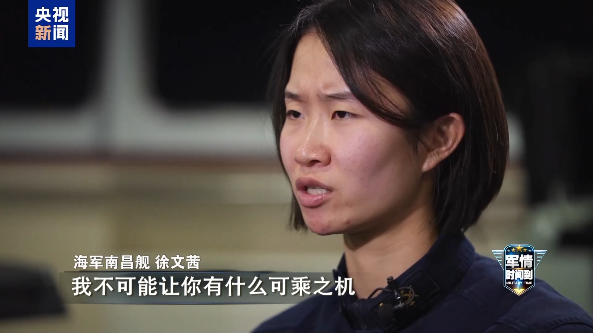 海军南昌舰 徐文茜:当时能听到指挥员不停地下舵令,我要频繁地转向,转变我们本舰的航向,去阻止它穿越我们编队。我不可能让你有什么可乘之机从我编队穿过去。