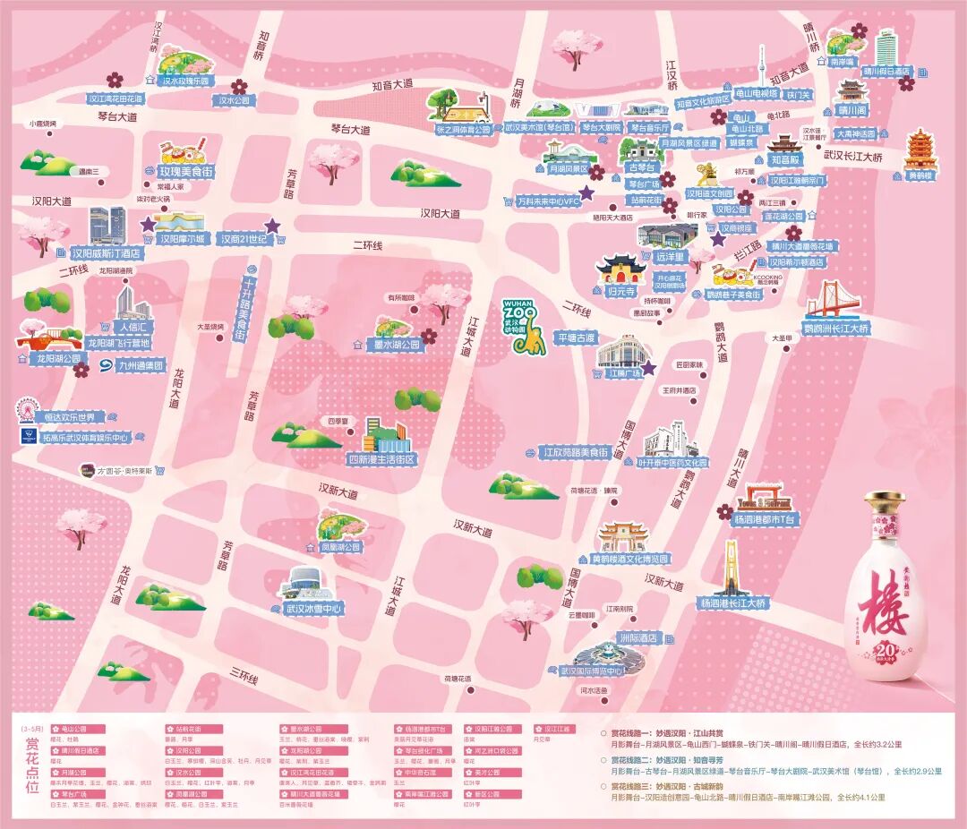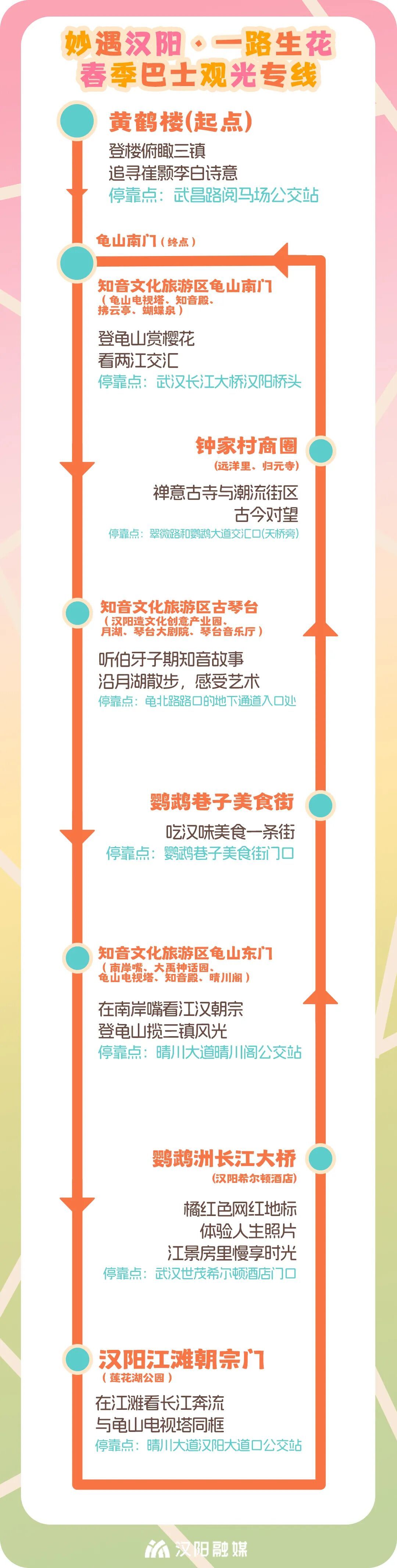 △“妙遇汉阳·一路生花”春季巴士观光专线线路图。