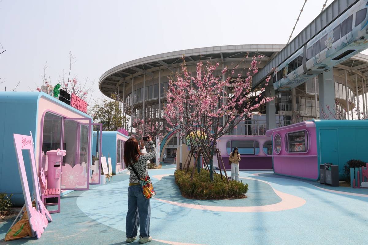 在光谷飞驰的空轨列车下,一所别具特色的樱花临时邮局于3月14日开门迎客,浪漫的樱花邮筒、花瓣造型的打卡墙、樱花粉的休闲座椅以及各色赏花季文创,引得不少来空轨附近赏花的游客来此驻足体验。这所由洪山区邮政分公司携手东湖高新区文旅部门联合打造的樱花临时邮局,设立在光谷空轨高新大道站,以“光樱的故事”IP为主题,在赏花季期间开展趣味打卡集章、明信片告白漂流、DIY互动体验等服务,为东湖高新科技文旅名片赋能添彩。