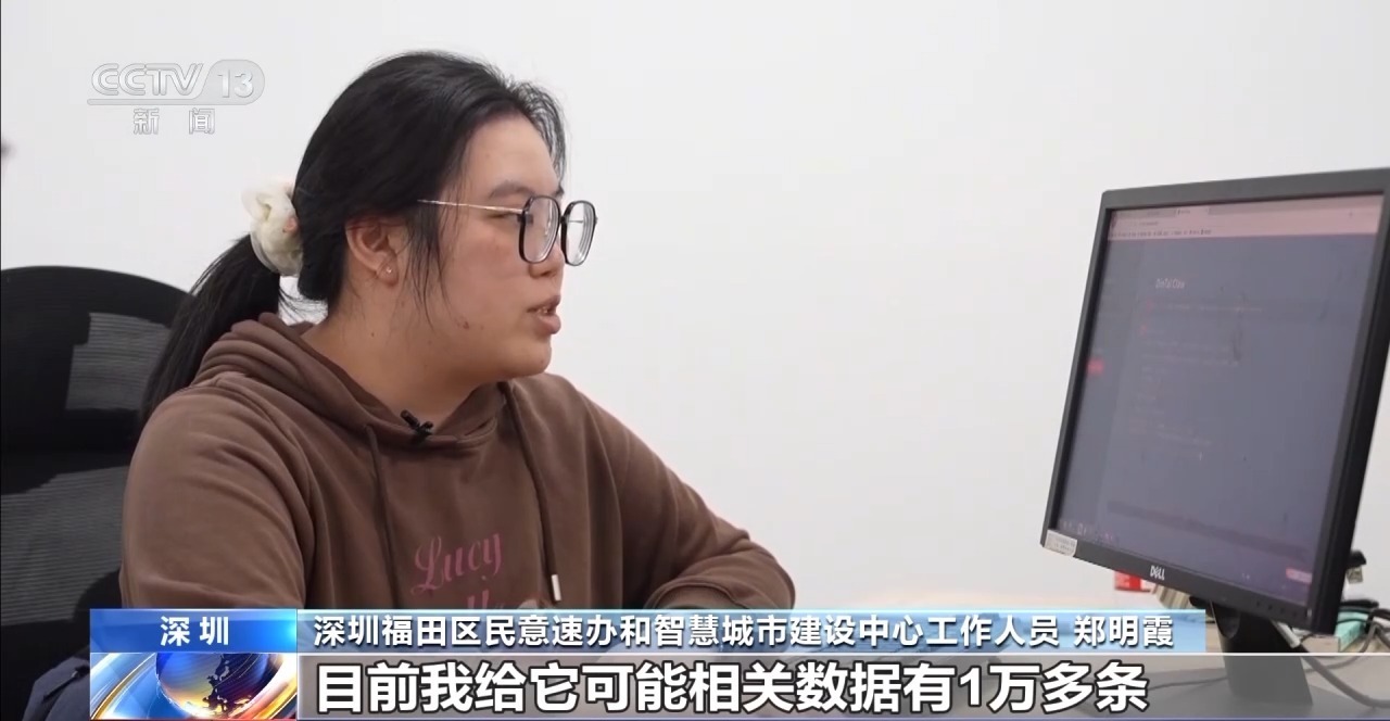 深圳福田区民意速办和智慧城市建设中心工作人员 郑明霞:以这次的数据为例子,目前我给它可能相关数据有1万多条,如果1万多条数据我们人工去分析的话,可能需要2到3周的时间,但是如果给它(“龙虾”智能体)一个指令,让它(“龙虾”智能体)去帮我们进行分析,它可以把时间压缩到4个小时,这样子我们人工就可以去深入地实际调研。