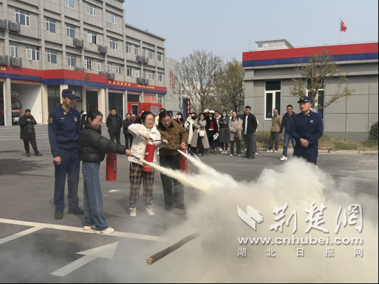 网格员对消防器材进行实操。通讯员 供图