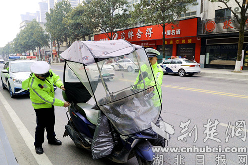 荆楚网(湖北日报网)讯(通讯员 欧阳智慧 李辉敏)“同志,请靠边停车,戴好头盔再骑行,安全出行切勿心存侥幸!”3月16日清晨,在湖北省襄阳市保康县城清溪路路段,执勤交警正对一名未按规定佩戴安全头盔的电动车驾驶人开展现场劝导。