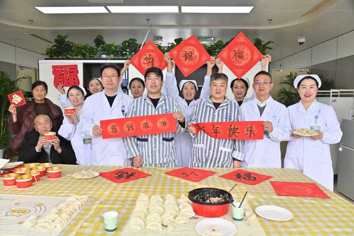 接受脑机接口治疗的患者与医护人员包饺子、写福字共迎新春。(受访单位供图)