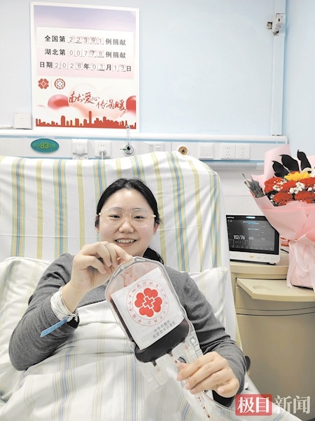 楚天都市报极目新闻讯(记者梁传松 通讯员李艳芳 刘佳 石红兵)“能救一条命,这点付出真不算什么。”3月15日,刚完成造血干细胞捐献、回到湖北黄石家中的郑海芳精神状态良好。这位28岁的黄石市中心医院病案统计科业务骨干,刚完成一场跨越千里的生命接力,她捐献的304毫升造血干细胞混悬液,正带着体温送往一名素未谋面的血液病患者体内,为对方点燃重生之光。