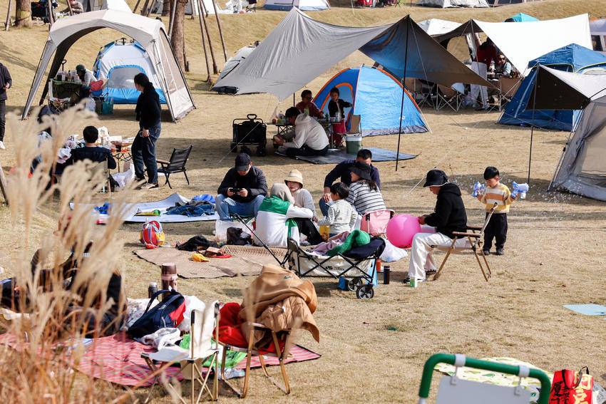 麓客岛上,市民露营放风