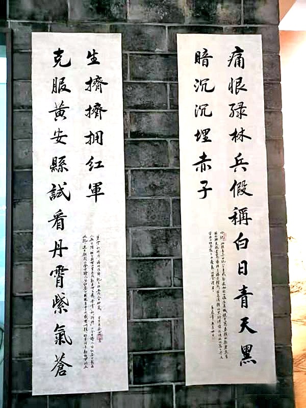 黄麻起义后,当地书法家吴兰阶即兴写下的对联,这是保存于黄麻起义和鄂豫皖苏区革命历史纪念馆里的复制品 通讯员供图