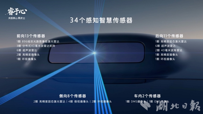岚图泰山Ultra及黑武士搭载了华为最新的乾崑ADS V4.1激光雷达方案,配备了包括激光雷达、高清摄像头、毫米波雷达、超声波雷达在内的34颗高精度传感器,构建起全场景无死角的感知网络。