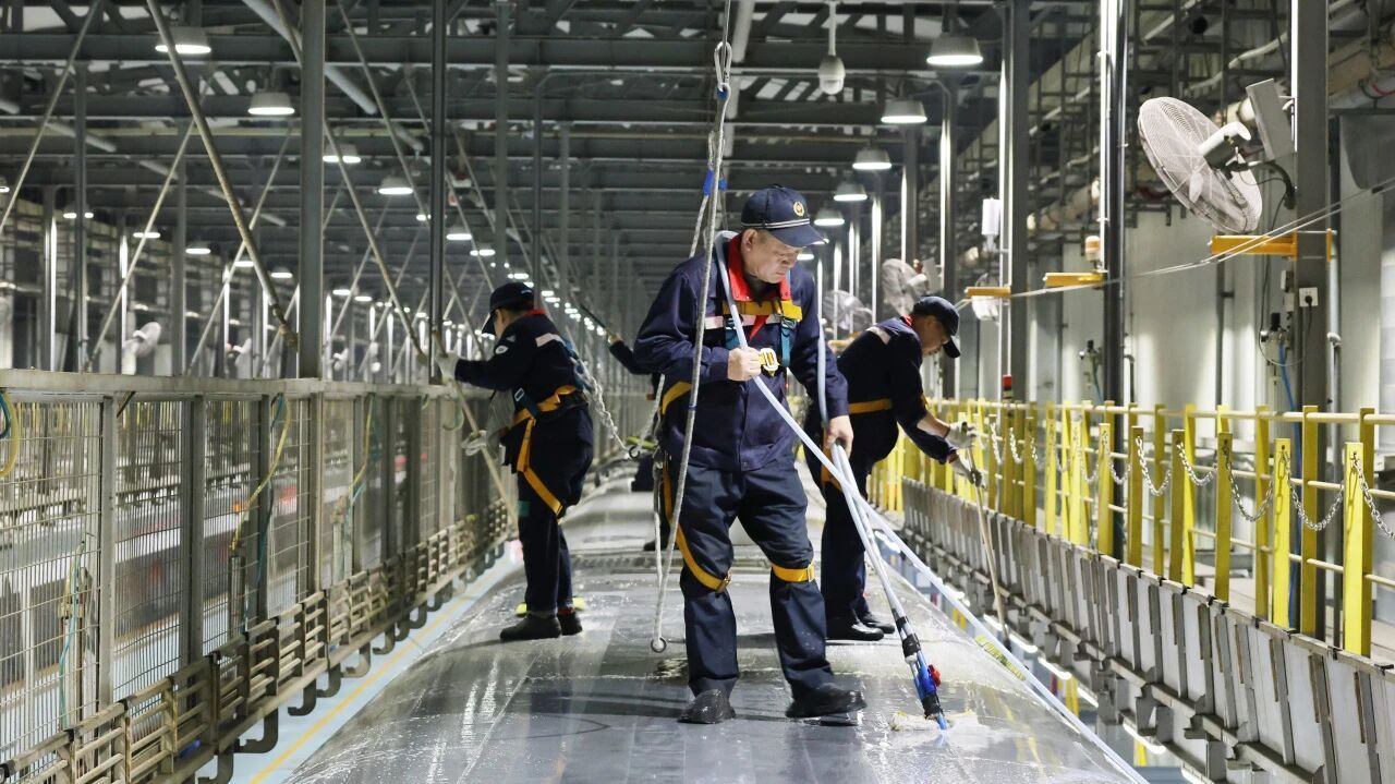 清洗完成并不代表作业结束,质检环节同样严格。工作人员使用试纸对车体进行抽样检测,直至检测合格,这不仅关乎美观,更是运行安全的细节保障。