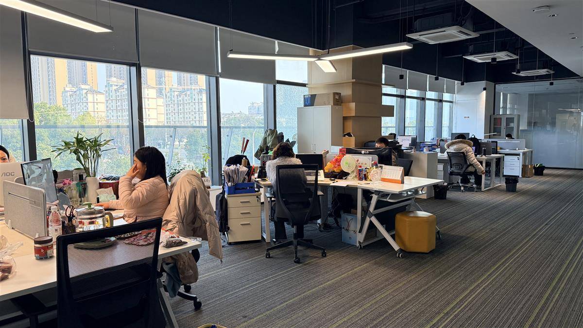 武汉市东西湖区迪马数智天地园区聚集了约十家“一人公司”,园区为他们提供350元一个工位的低成本入驻。(湖北日报全媒记者黄洁如摄)