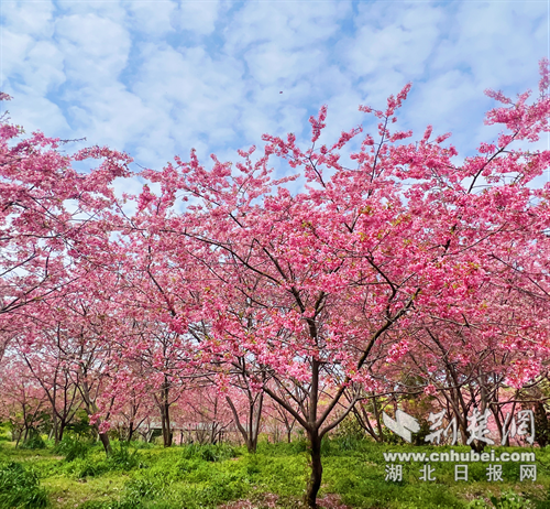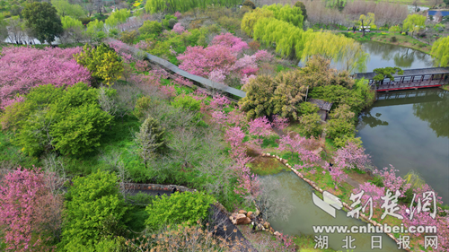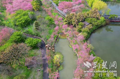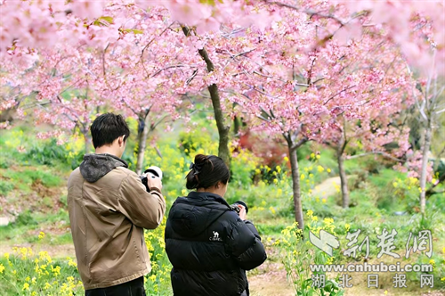 荆楚网(湖北日报网)讯(记者 安从斌 通讯员 张思 朱秀晖 李田瑞)春日渐浓,荆门赏樱迎来黄金期。3月18日,记者在沙洋县曾集镇雷都村的樱花部落景区看到800余亩樱花相继绽放,吸引众多游客纷至沓来,赴一场春日浪漫之约。
