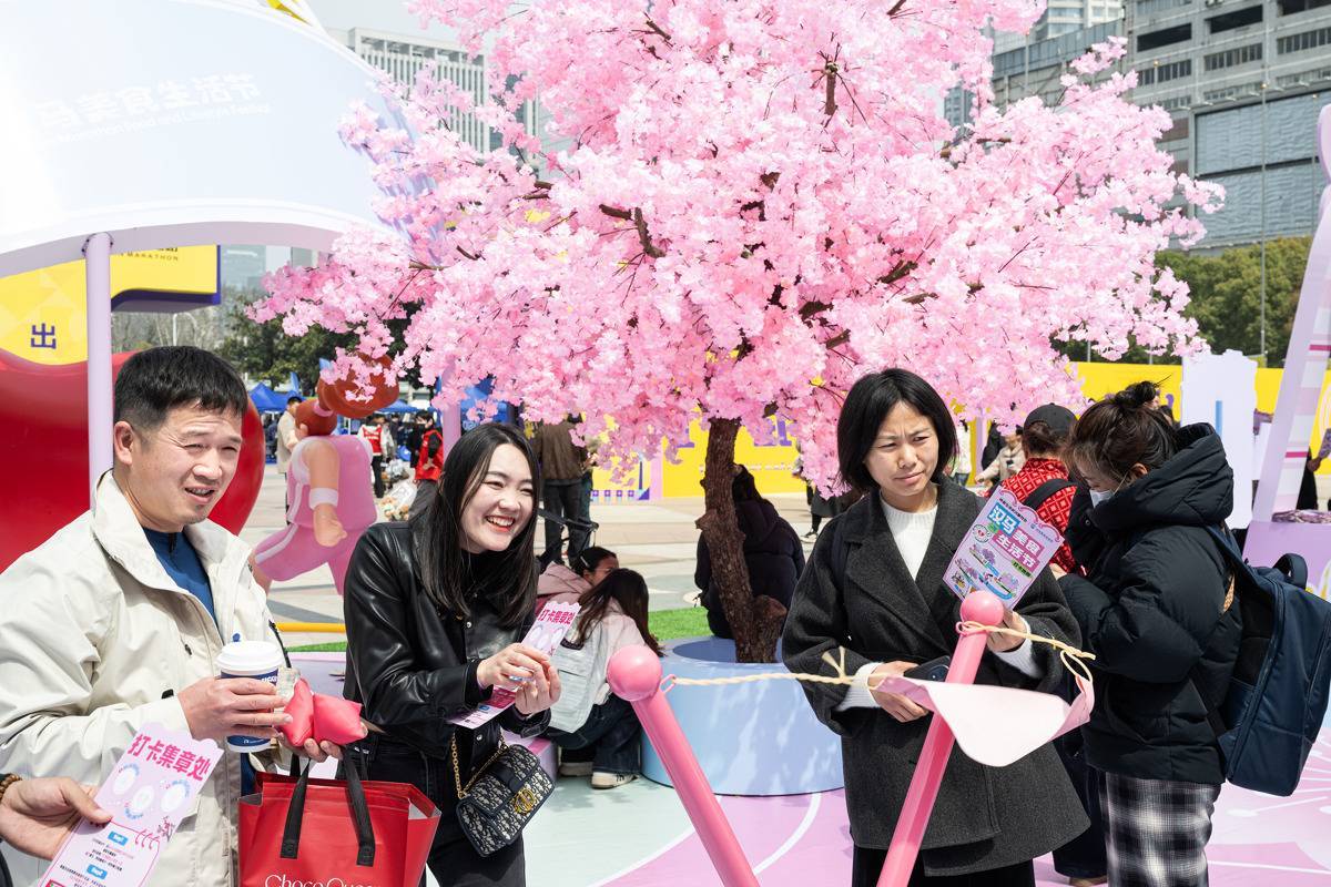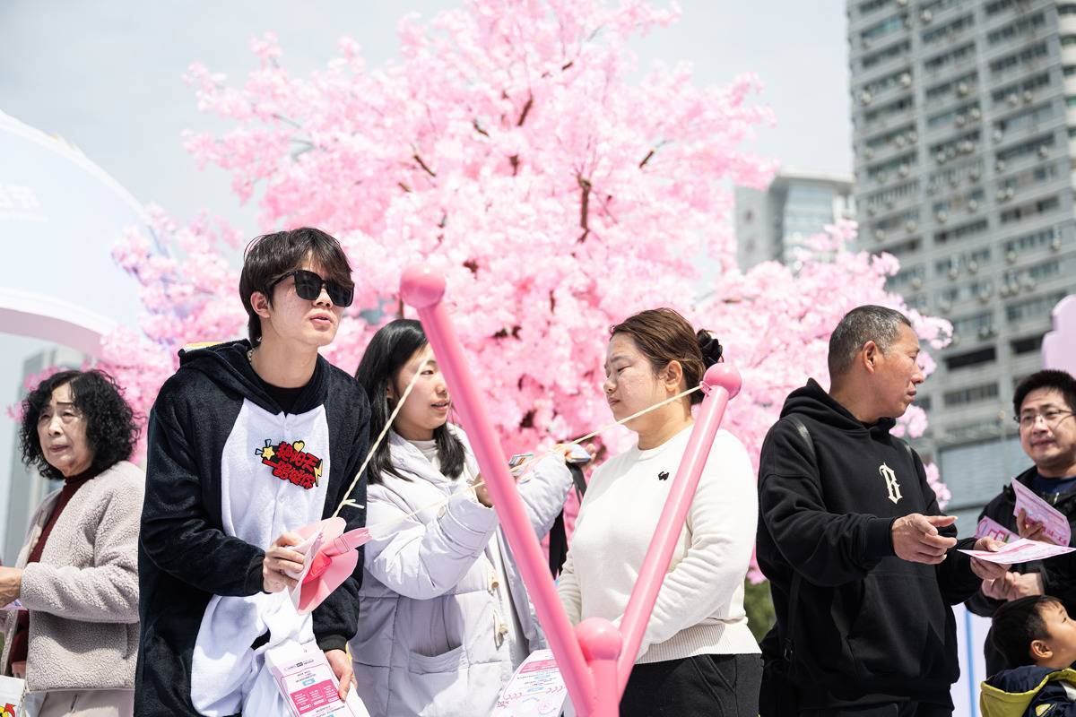 3月19日,观众在美食广场体验游戏。(湖北日报全媒记者 任勇 摄)