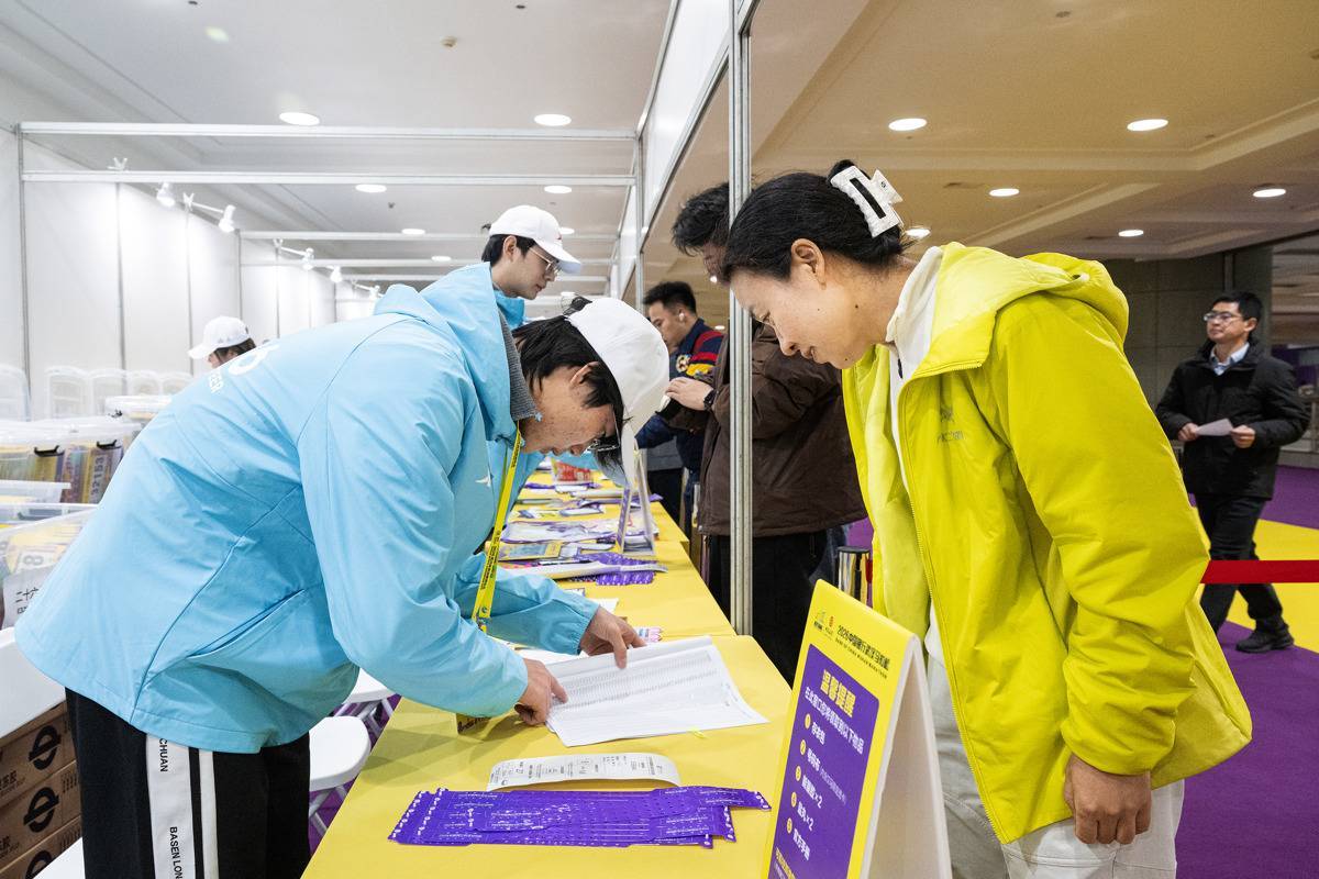 3月19日,选手领取赛前物资。(湖北日报全媒记者 任勇 摄)