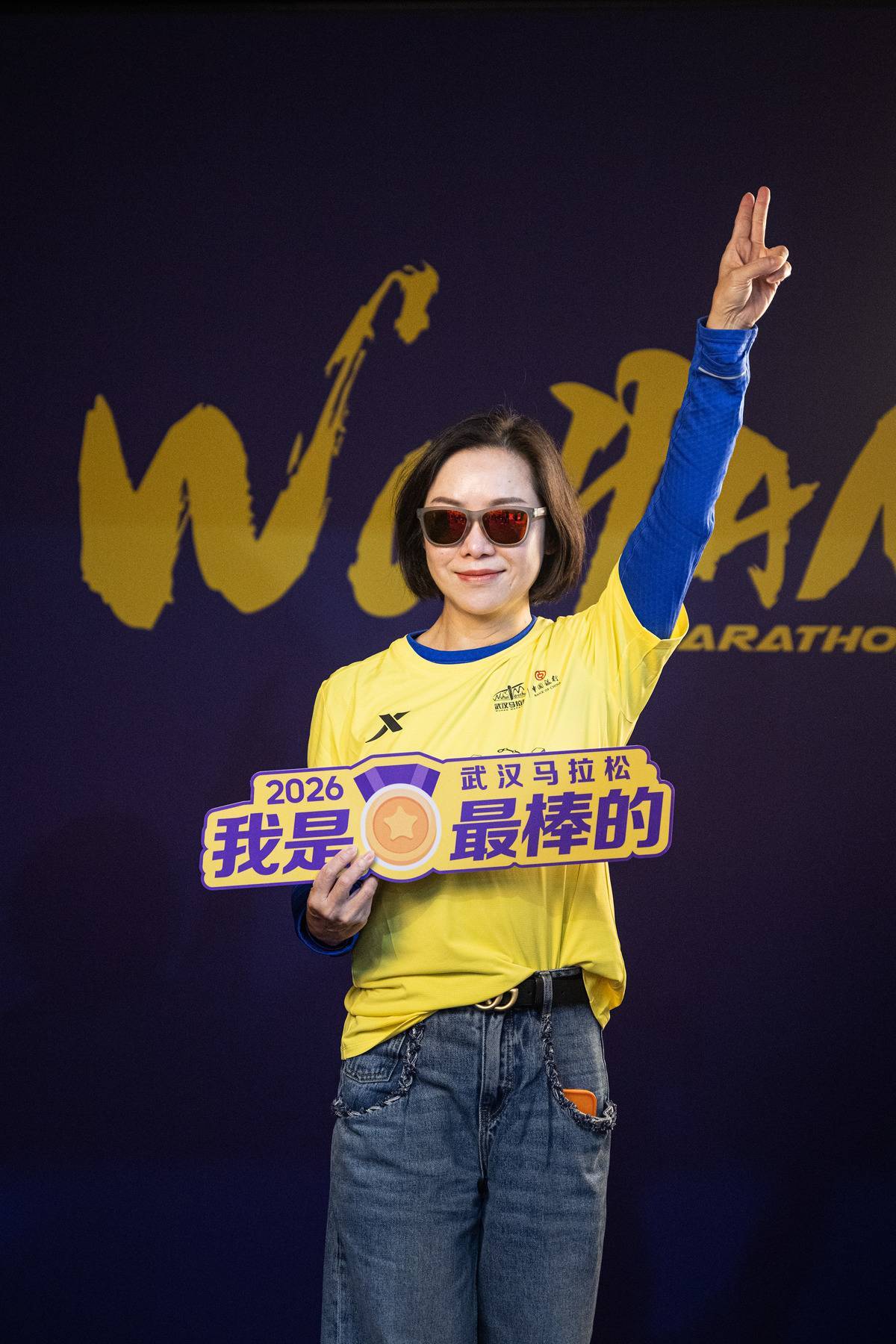 3月19日,选手身着汉马跑服拍摄“定妆照”。(湖北日报全媒记者 任勇 摄)