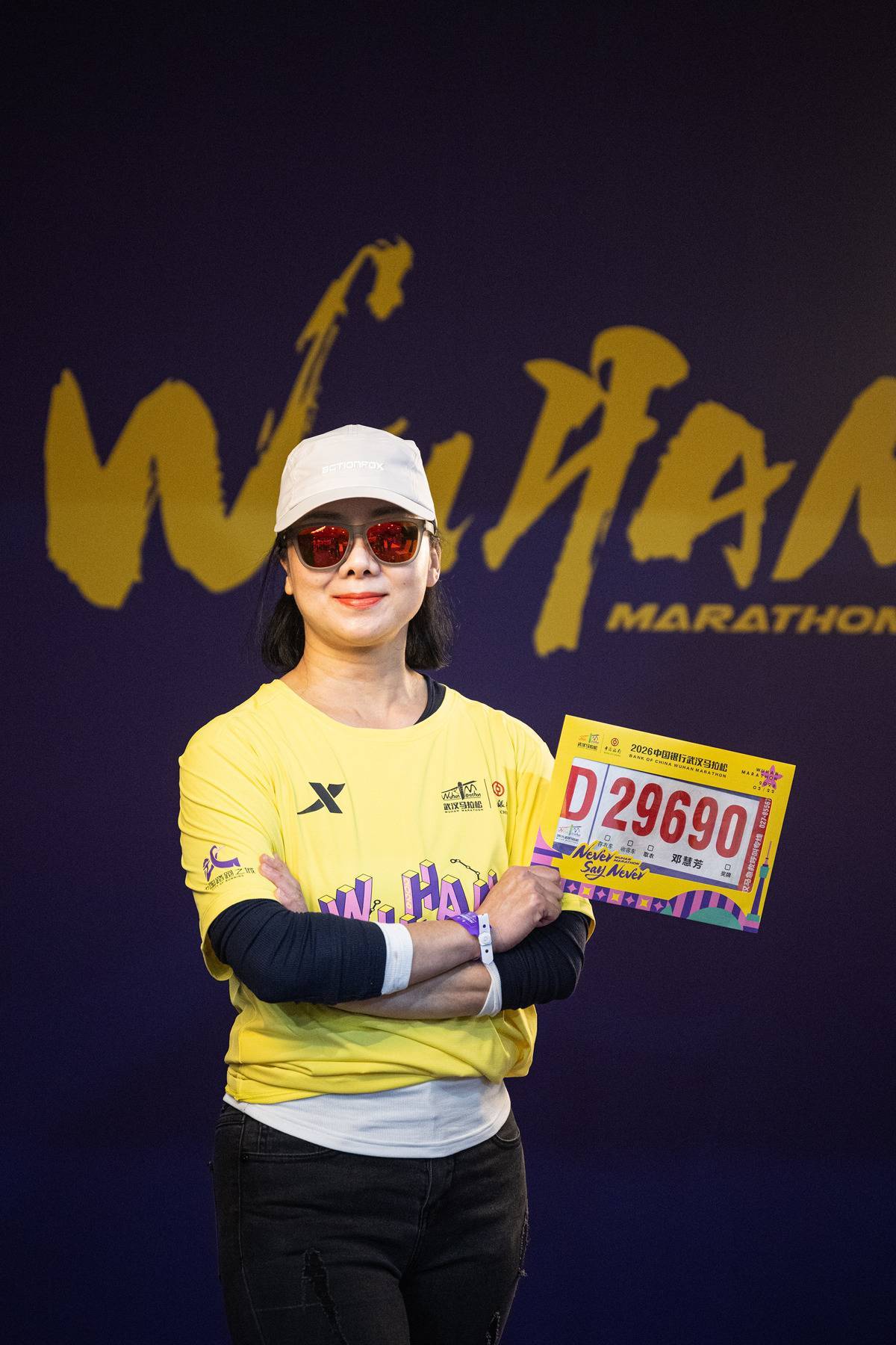 3月19日,选手领取完物资后与自己的号码牌合影。(湖北日报全媒记者 任勇 摄)(湖北日报全媒记者 任勇 摄)