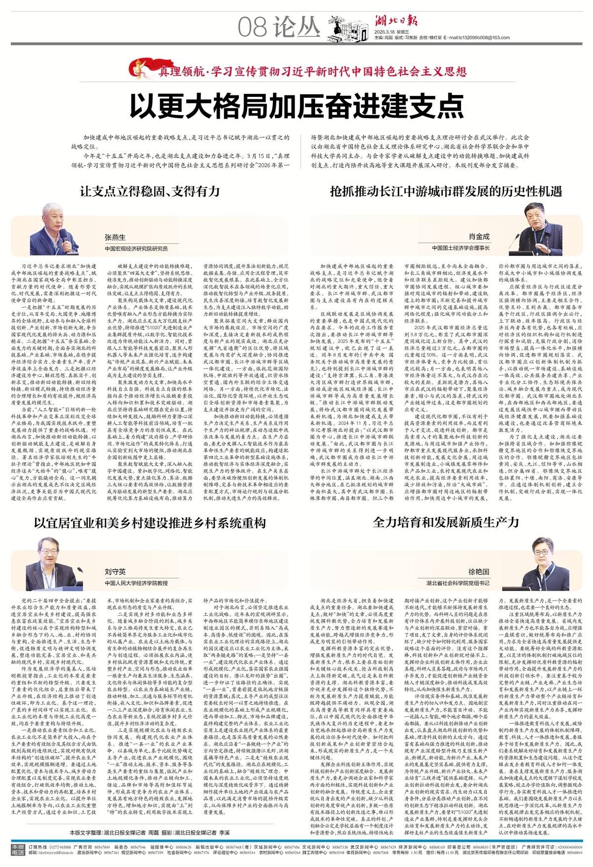 聚焦激发动力大文章,加快高水平科技自立自强。科技自立自强的根本指向在于推动经济增长从依赖要素投入转向知识积累和技术突破驱动。湖北应坚持将基础研究摆在突出位置,持续加大研发投入,鼓励科研力量潜心深耕人工智能等科技前沿领域,培育一批具有全球竞争力的原创性成果。在此基础上,着力构建“政府搭台、产学研协同、市场化运作”的成果转化体系,打通从实验室到大市场的梗阻,推动湖北在全国创新版图中更上层楼。