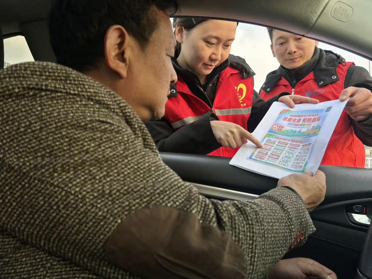 站点同步在收费广场开展拒酒驾普法宣传活动,“爱路-AiLu”志愿者在宣传咨询台前向过往司乘发放漫画图文版拒绝酒驾宣传单,结合典型案例清晰解读酒驾相关法律责任与危害,呼吁司乘人员自觉抵制酒驾行为,同时常态化组织全体职工开展法律法规专题学习,筑牢遵法守纪思想防线。
