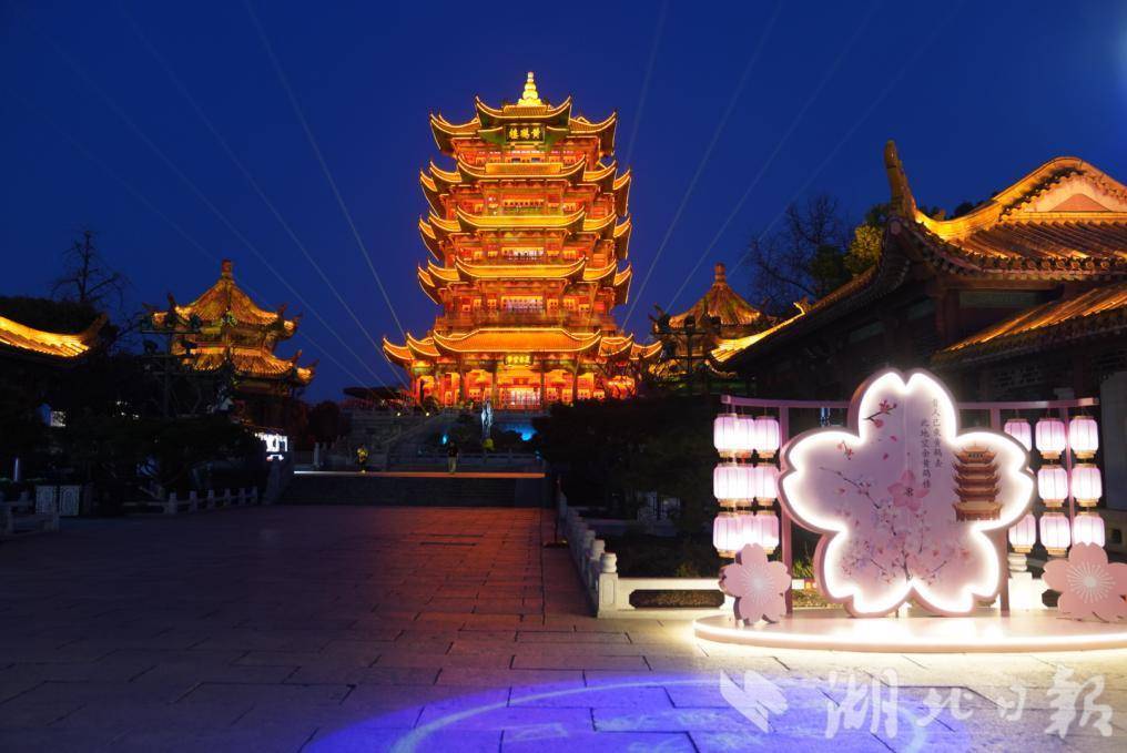 “夜上黄鹤楼”樱花季夜间活动同步开启,为游客呈现别样名楼夜色。