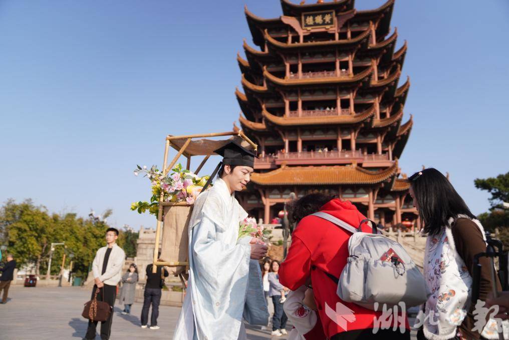 跟随“花神”的巡游路线,游客们还能参与趣味游戏,参与即有机会赢取黄鹤楼门票、文创礼品及樱花季体验券等,让游客在互动中感受传统乐趣。