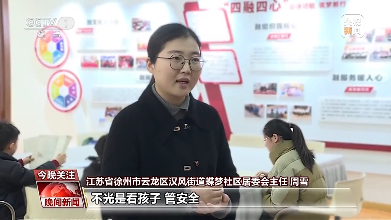 江苏省徐州市云龙区汉风街道蝶梦社区居委会主任 周雪:我们的工作人员和我们的志愿者,不光是看孩子、管安全,我们还精心去设计了一些手工非遗小课堂、春日科普小课堂等,让家长们能够安心上班、放心托付。