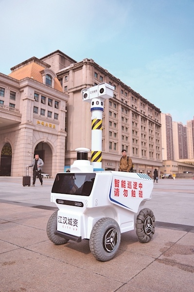 楚天都市极目新闻讯(记者卢成汉 通讯员李军申燕伟 高四光)“正在巡逻工作中,请勿靠近阻挡,请勿轻信拉客人员,谨防上当受骗。”3月18日,汉口火车站南广场上,一台机器人正用标准的普通话来回提醒路人。不少拖着行李箱的旅客忍不住多看两眼,还有人掏出手机拍照——这位新“员工”,确实有点潮。