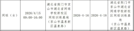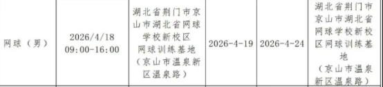 荆楚网(湖北日报网)讯(通讯员 赵逸凡 腾腾)3月19日,2026年全国体育单招考试网球项目考点正式确定设置在京山市,将于4月15日一4月24日在京山网球训练基地举行。这是该项考试首次在县级市设考点。