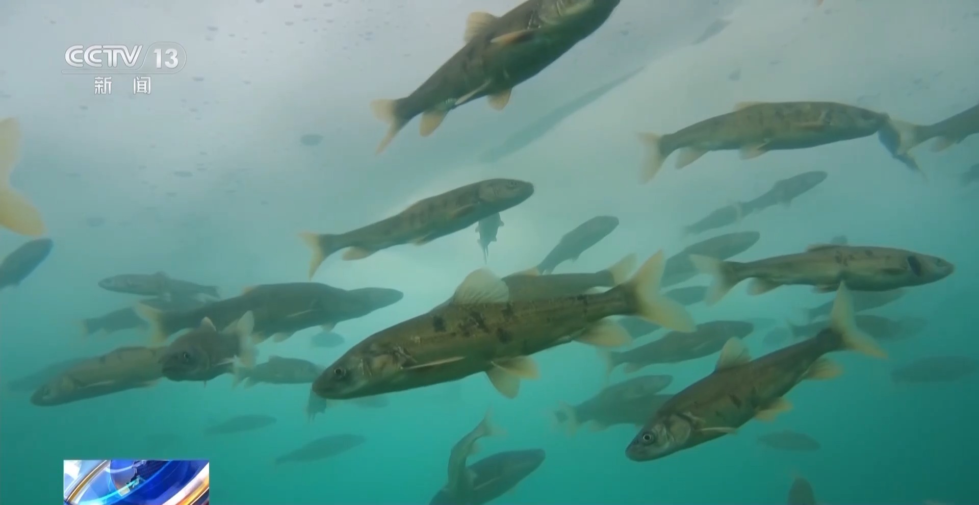 成群的青海湖裸鲤在水下游弋,作为青海湖生态系统的核心物种,每到冬天,它们就会聚集到湖水较深的区域越冬,新陈代谢速度大幅减缓;开春之后,随着湖面消融、水温上升,它们会逐步恢复活性,开始觅食,为每年6月到7月的洄游产卵积蓄能量。