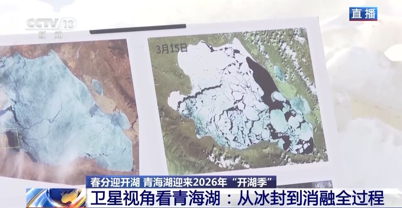 青海湖迎来“开湖季” 卫星视角看冰封到消融全过程