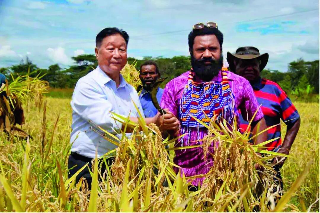 2018年,林占熺在巴布亚新几内亚与当地农民庆祝丰收