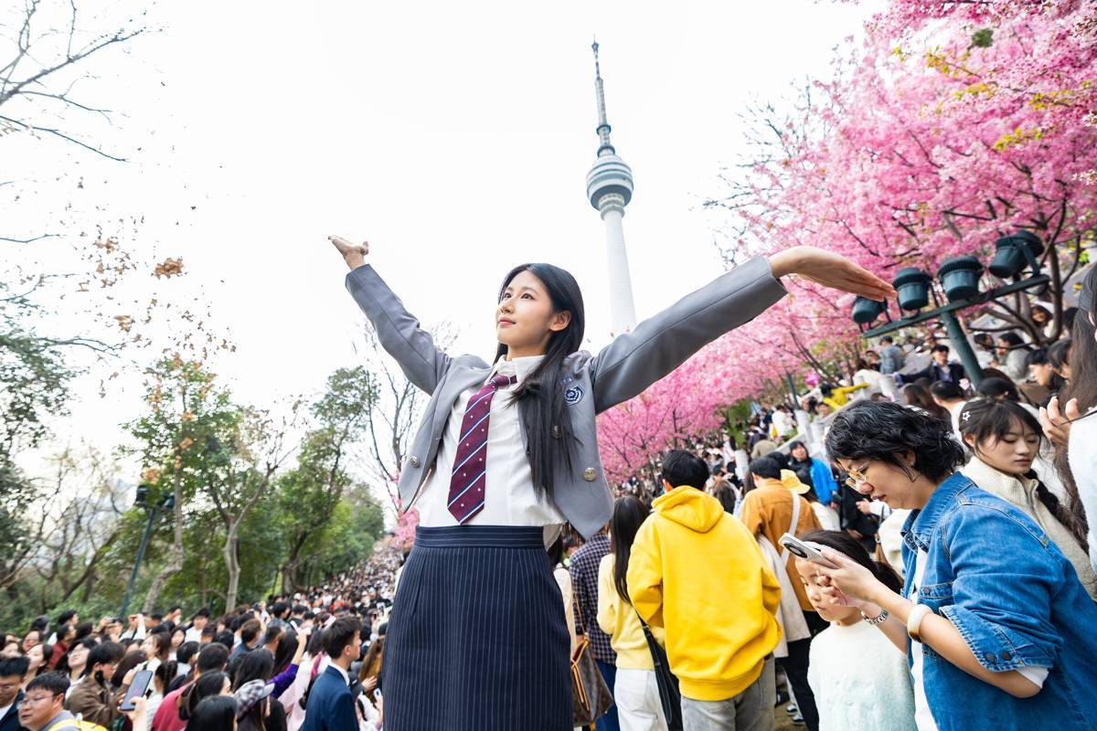 这里藏着400余株特色樱花,从早樱到晚樱,品种丰富,花期错落。眼下,龟山公园第四季樱花季活动“不负春光 樱你而来”已正式启动,10余场特色活动将轮番上演。最绝的拍摄角度,莫过于让绽放的樱花与地标龟山电视塔同框——粉嫩的花瓣映衬着现代都市的剪影,是专属于武汉的春日限定。