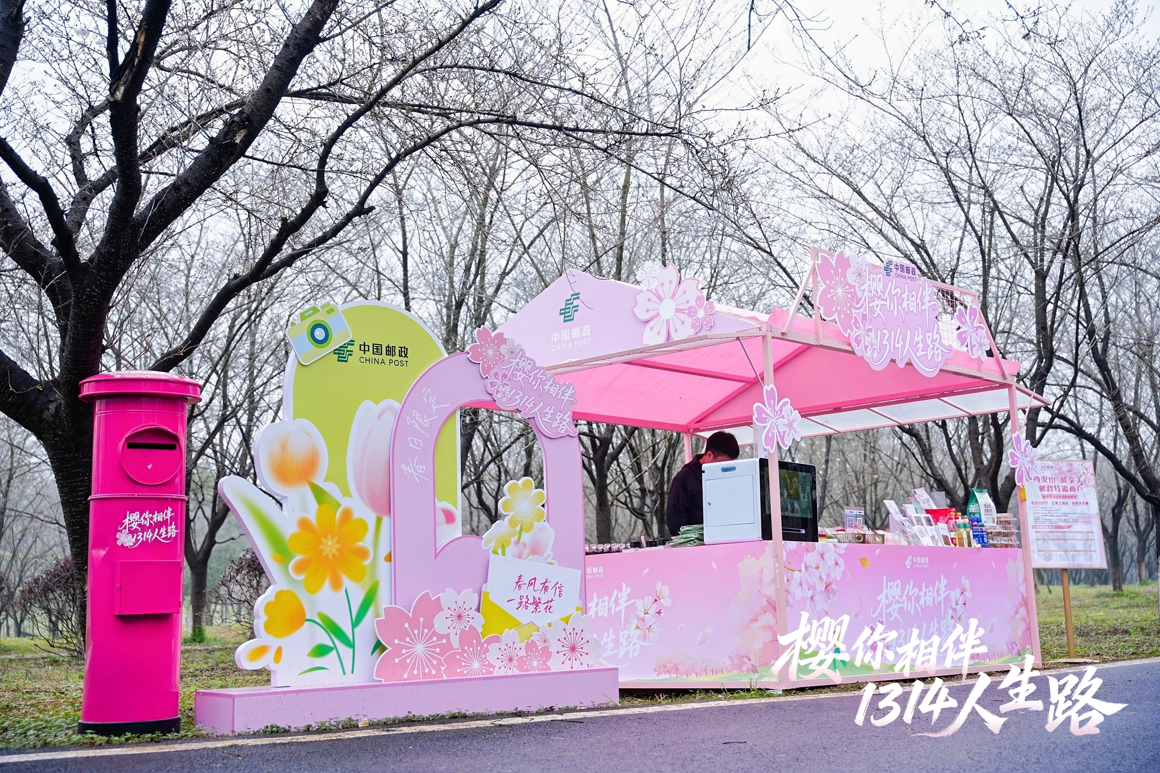 江夏邮政的加入为赏樱增添温情。开幕式上,武汉市邮政艺术团带来精彩节目;30名邮政职工组成的徒步方队成为亮眼风景;“樱花邮局”前,游客们挑选明信片,盖上樱花纪念章,将春日心情寄向远方。