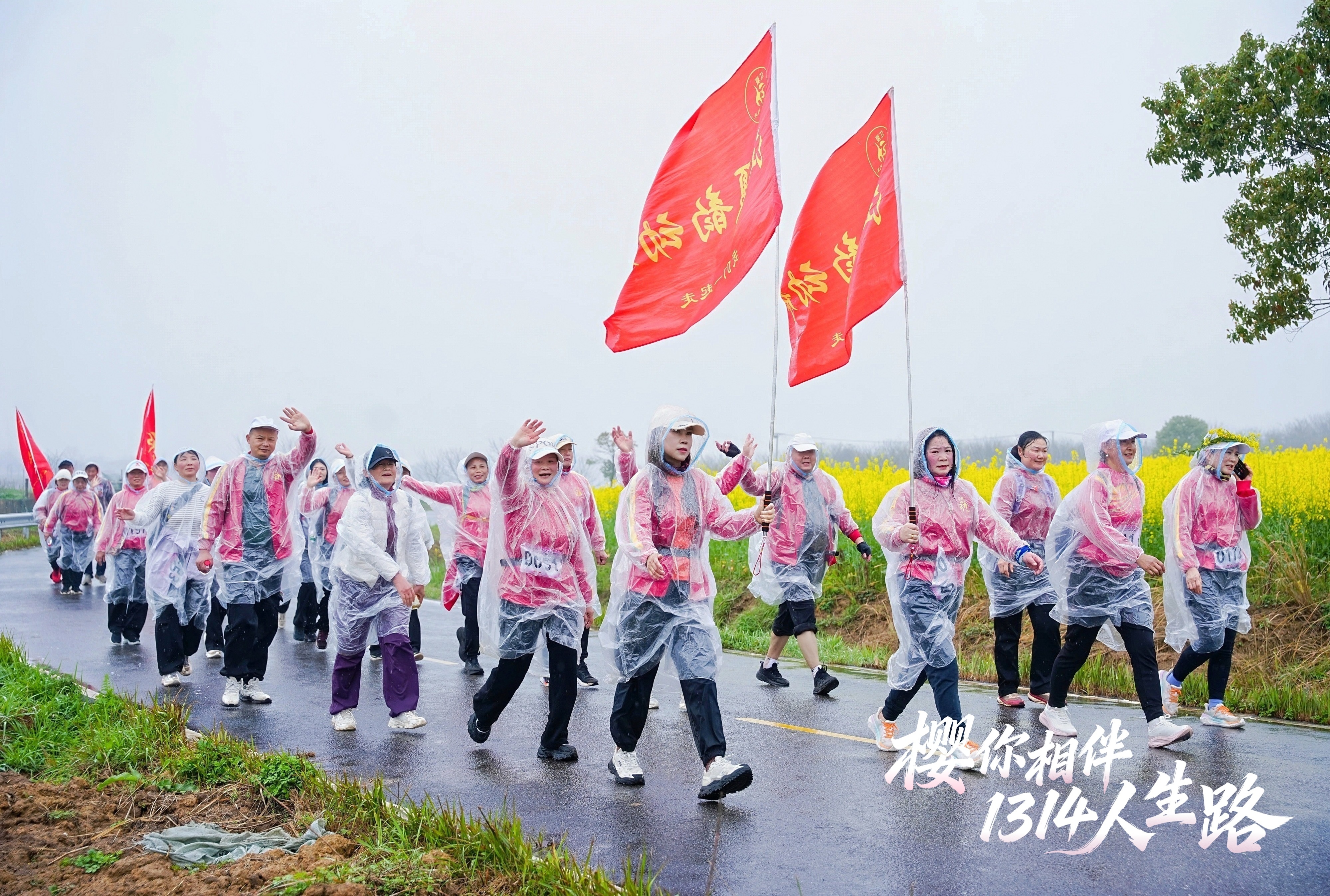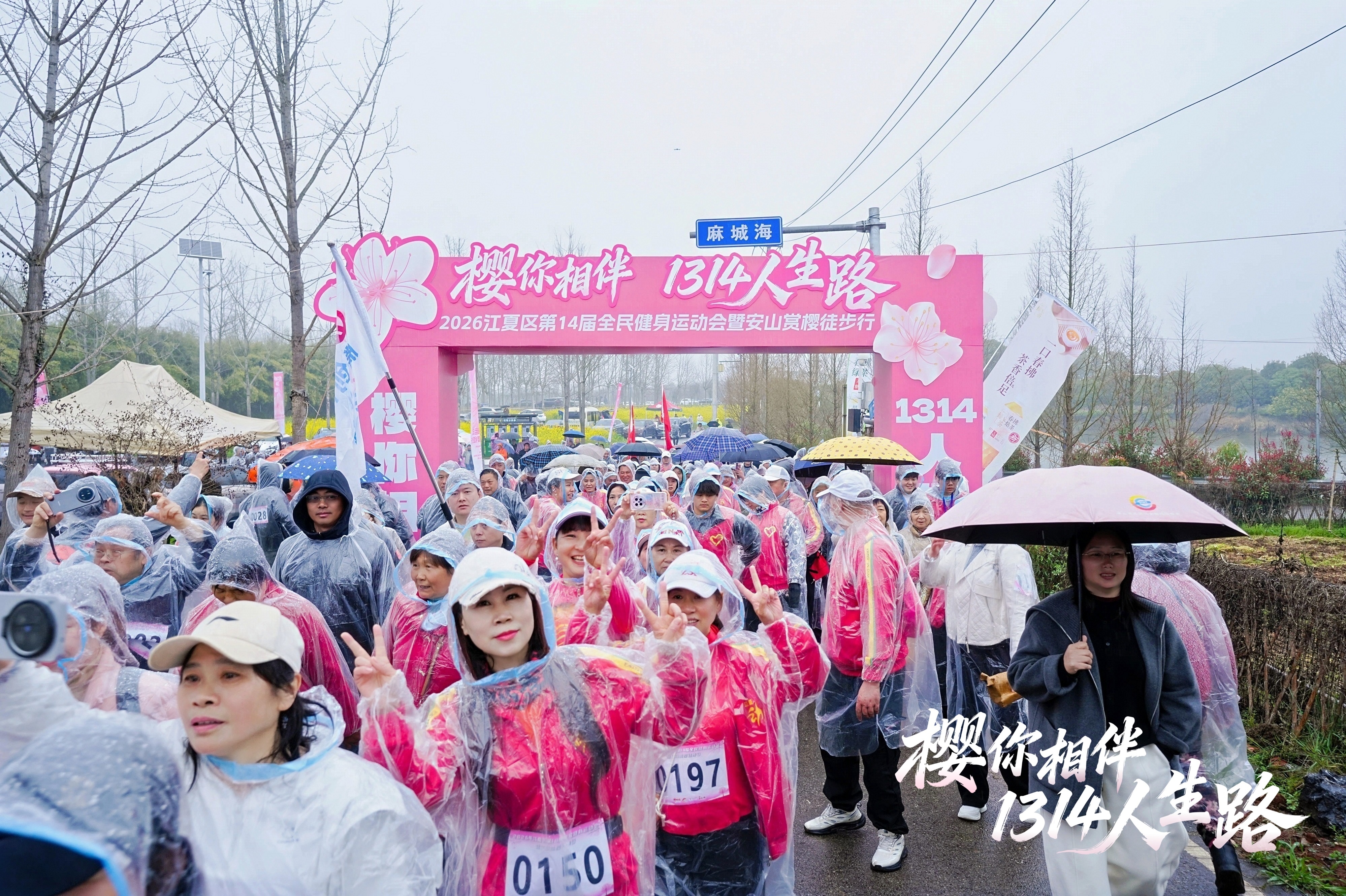 湖北日报讯(记者杨文漪、通讯员史云龙、陈可馨)春染鲁湖,樱落安山。3月20日上午,2026江夏区第14届全民健身运动会暨安山赏樱徒步行活动在安山街青春村麻城海广场浪漫启幕。千余名徒步爱好者迎着春雨,从樱花园出发,踏上13.14公里环湖征程,在粉樱叠雪与湖光潋滟中,共赴一场“一生一世”的春日之约。