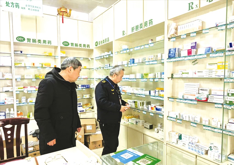 近日,广水市市场监管局组织开展药品安全专项检查行动,维护消费者合法权益,进一步规范药品市场秩序。图为执法人员到零售药店检查药店的资质是否齐全、是否销售过期药械、药械购进渠道是否合法等。