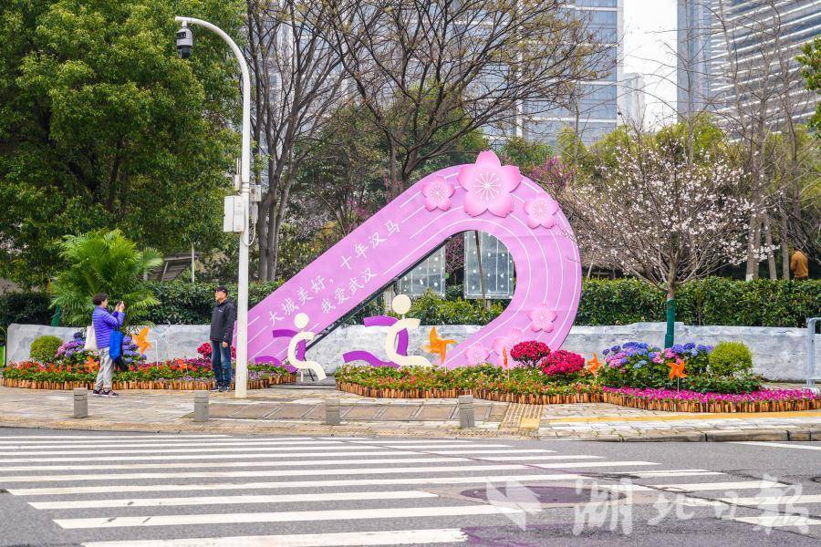 据了解,今年汉马赛事期间,武昌区除了打造两处特色景观小品,还对赛道沿线的绿化环境进行了全方位提升,在关键点位布置10万盆时令花卉,栽植160余株樱花,摆放箱栽樱花,精心勾勒“樱花赛道”特色景观,用“绣花功夫”为赛事保驾护航。