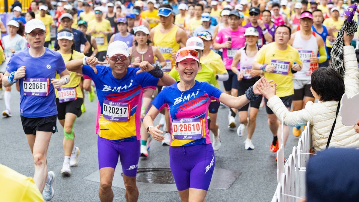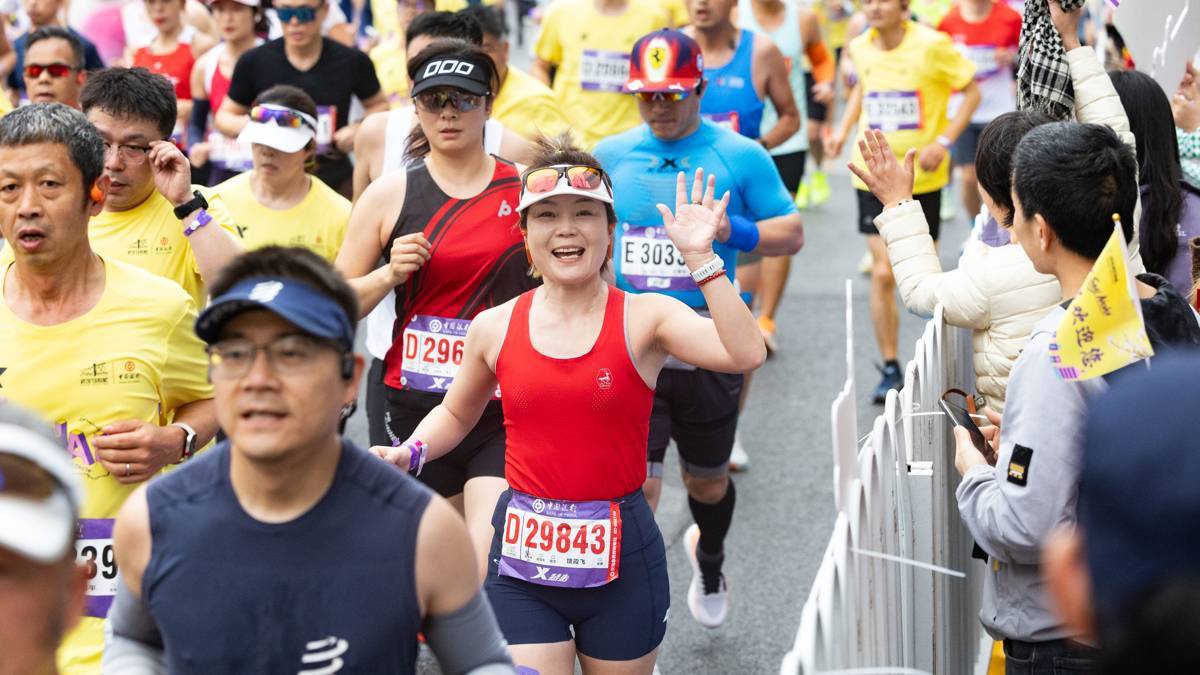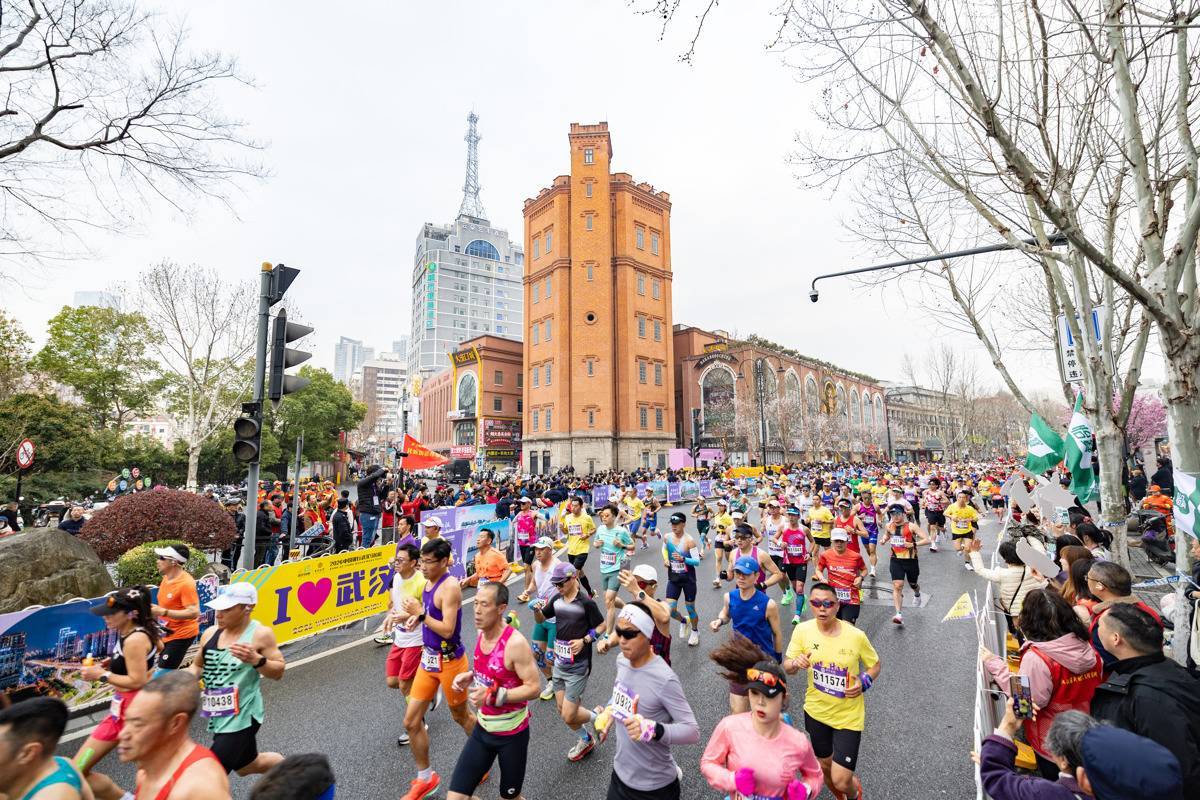 2026年3月22日,2026武汉马拉松鸣枪开跑,选手们满怀激情地跑过武汉汉口百年中山大道上的汉口水塔。(湖北日报全媒记者 何宇欣 摄)
