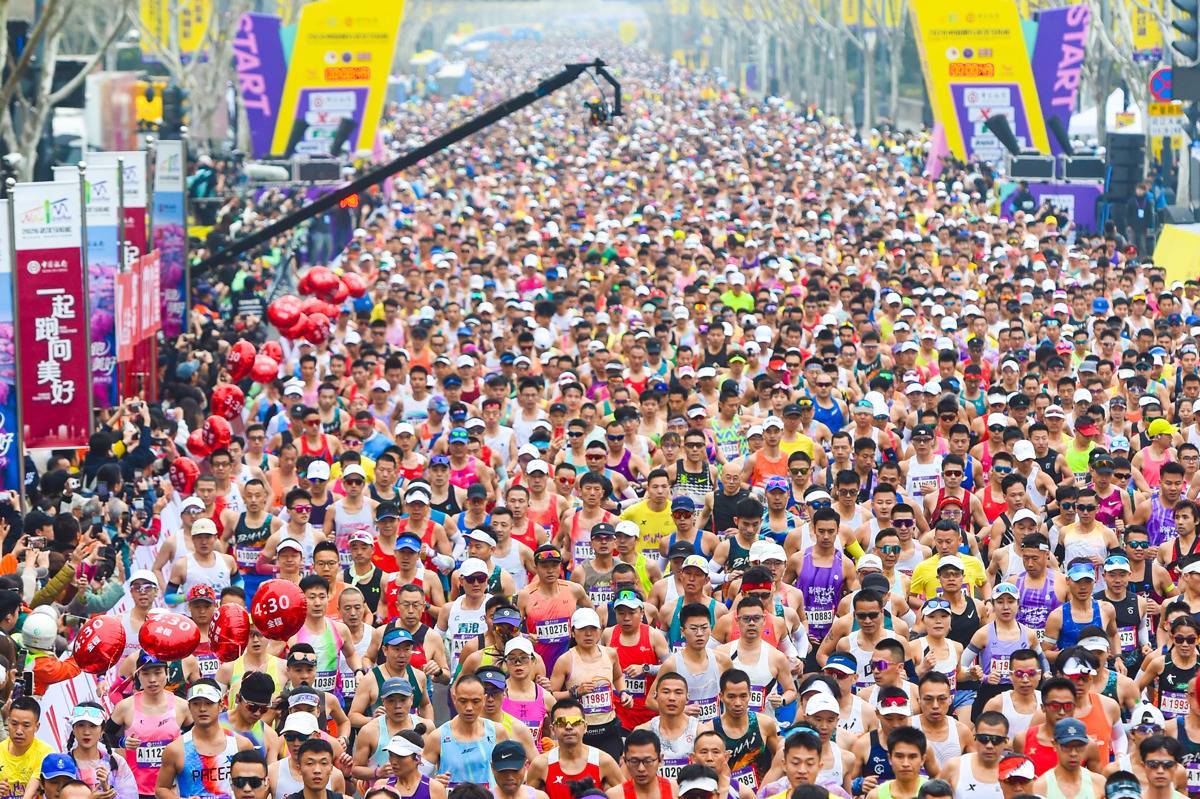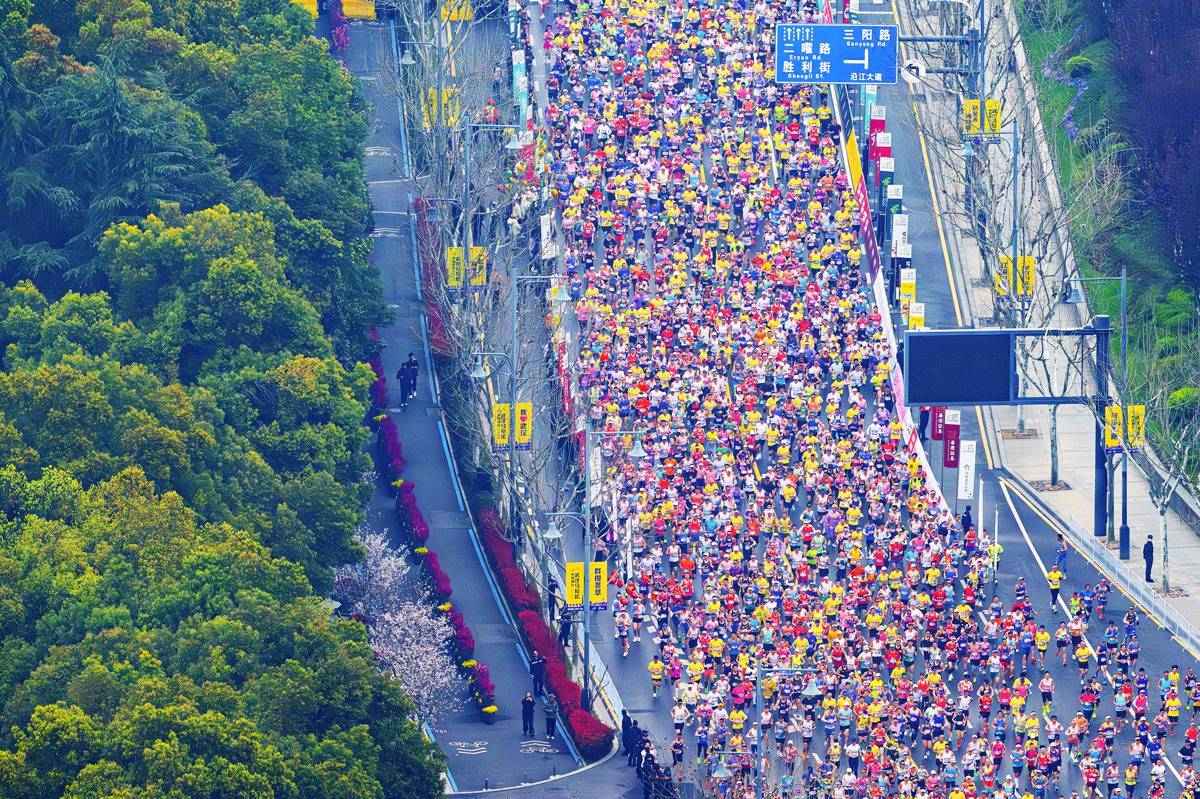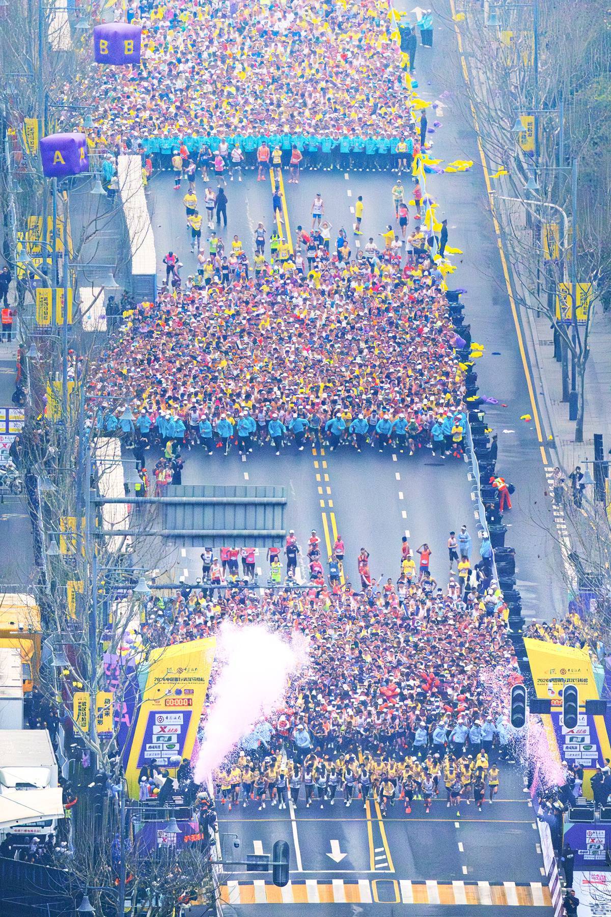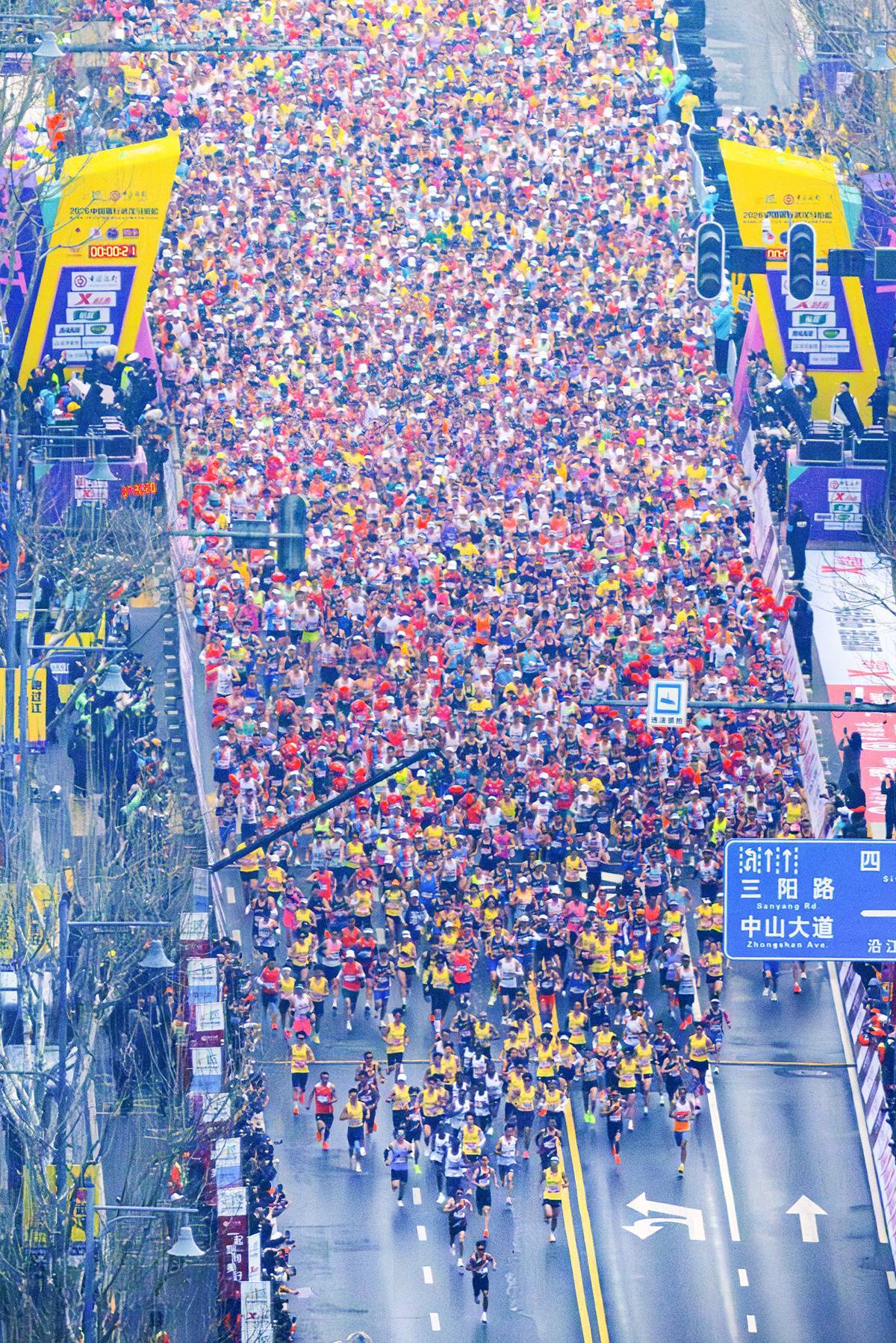 3月22日7时30分,2026武汉马拉松正式鸣枪起跑。(湖北日报全媒记者 任勇 摄)