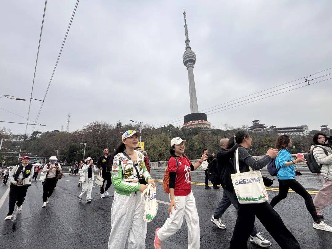 约2000名“跟着汉马走大桥”市民游客按组列队,沿龟山北路徒步而上,途经龟山公园北门、核心景点,最终登上万里长江第一桥——武汉长江大桥。