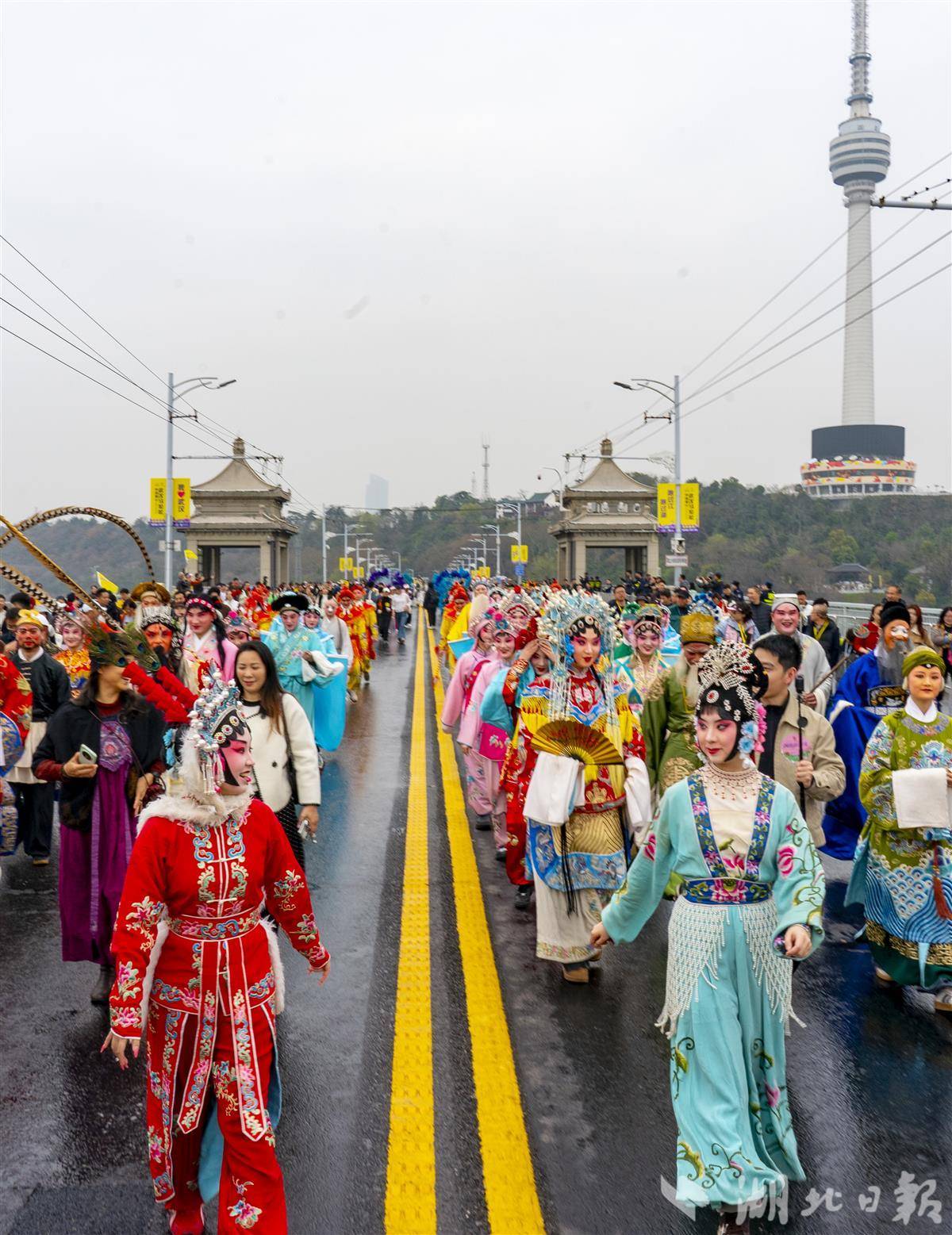 数千名市民游客、旅游团队与表演方阵,以脚步丈量武汉长江大桥,共赴一场“文体旅融合”的城市盛会。