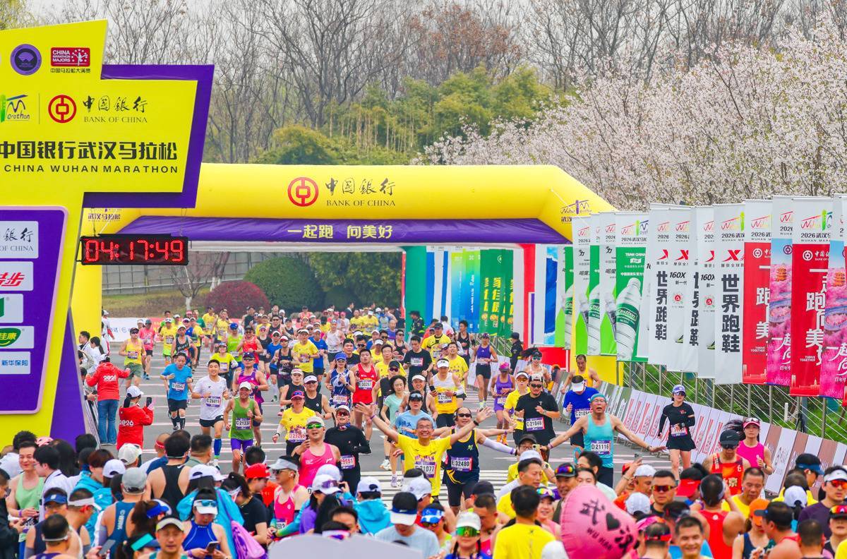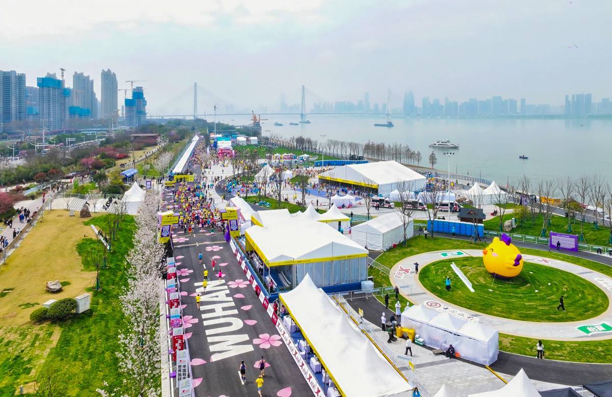 3月22日,来自世界各地的参赛选手冲过终点。(湖北日报全媒记者 柯皓 摄)