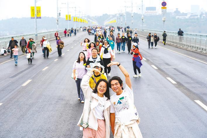 这座“万里长江第一桥”在其69年的漫长岁月中,迎来了罕见的“限时步行桥”时刻。