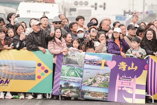 比赛现场,除了参赛选手奋力奔跑外,场边的氛围也格外引人注目。选手奔跑途中,途经沿途的补给点,跑者提前减速,靠边领取水和能量物资,有人接过补给后不忘向志愿者道一声“谢谢”;市民们则早早守在赛道两侧,“加油!”“坚持住!”“你是最棒的!”此起彼伏的加油声,串联着整个赛道。