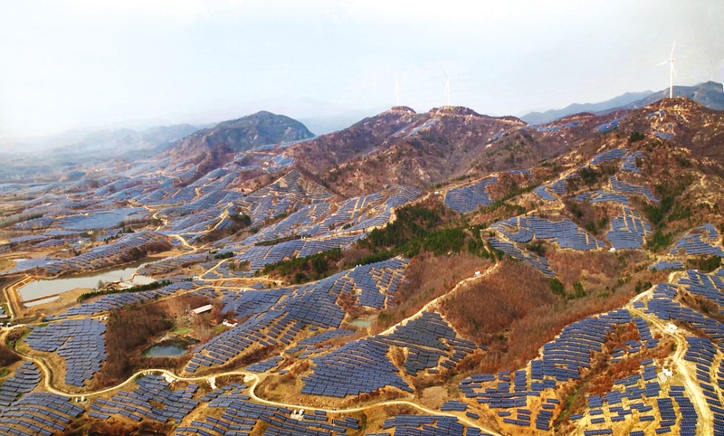 万和镇沙河店村及周边连片光伏发电和风力发电项目。 (全媒记者徐斌摄)