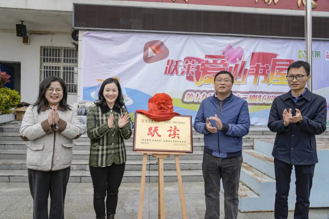 3月20日13时30分许,春日的暖阳洒满校园,捐赠仪式在同学们热情洋溢的开场舞中拉开帷幕。跃莱党支部书记刘畅、跃莱爱心书屋负责人胡巍、麻城市铁门岗乡党委委员胡锦民、麻城二初铁门岗校区校长黄志祥共同为爱心书屋揭牌。