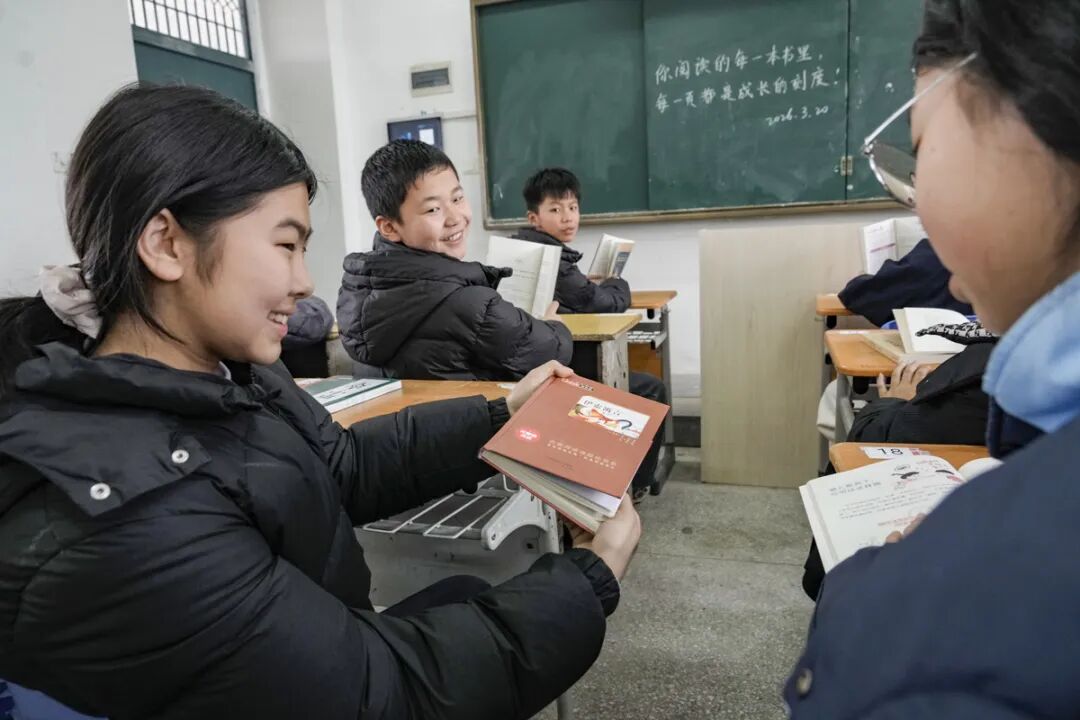 捐赠仪式结束后,跃莱的爱心人士还走进课堂,用捐赠的书籍和孩子们一起上了一堂生动的阅读课。爱心志愿者们与孩子们并肩而坐,共同翻阅着刚刚捐赠的《伊索寓言》《海底两万里》等经典读物。孩子们踊跃举手,分享自己的阅读感悟,有的讲述书中主人公的勇敢坚韧,有的结合自身经历畅谈读书带来的启发。教室里洋溢着浓浓的书香与欢声笑语,这份因阅读而生的温暖与陪伴,已在孩子们心中悄然种下希望的种子。