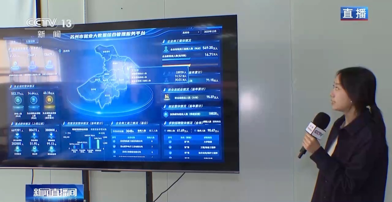 在苏州市就业大数据综合管理服务平台上,实时显示了企业的用工情况变化,也可以看到不同技能人才和他们的技能等级在不同行业的分布情况和变化趋势。这是苏州市政府对10万多条招聘数据进行AI动态分析,并对2500多家链主企业、重点企业开展走访调查后形成的一个“智慧大脑”。