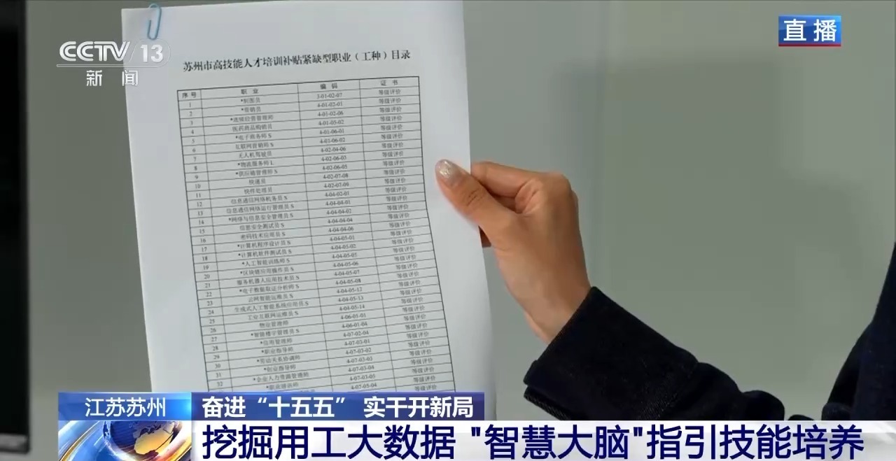针对本地产业需求,目前,苏州已经建成了20个数字技能公共实训基地,形成了“30分钟职业技能培训圈”,常态化地推出技能夜校、送技下乡、共享课堂等培训服务。今年计划新增数字技能人才超过3万人,掌握一门技术,实现高质量就业,让更多劳动者通过技能增收、技能致富。